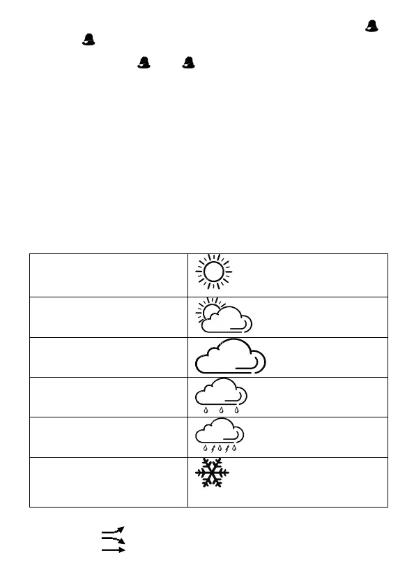 1) Stlačením tlačidla navrchu meteo stanice dočasne zastavíte alarm, pričom symbol 1
