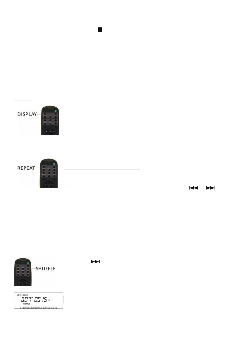 To play the tracks on a CD in a random sequence, press the SHUFFLE button during playback.