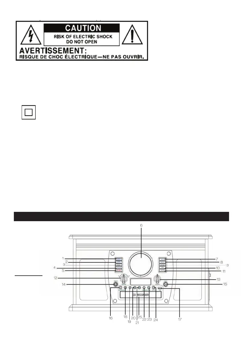 -Warning: To reduce the risk of electric shock, do not remove cover (or back) as there are no