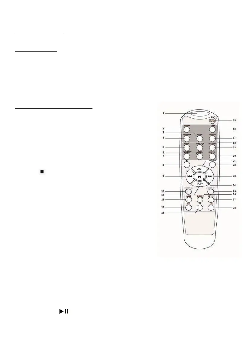 16. “CLEAR” In CD or USB mode, Press to clear programmed tracks.