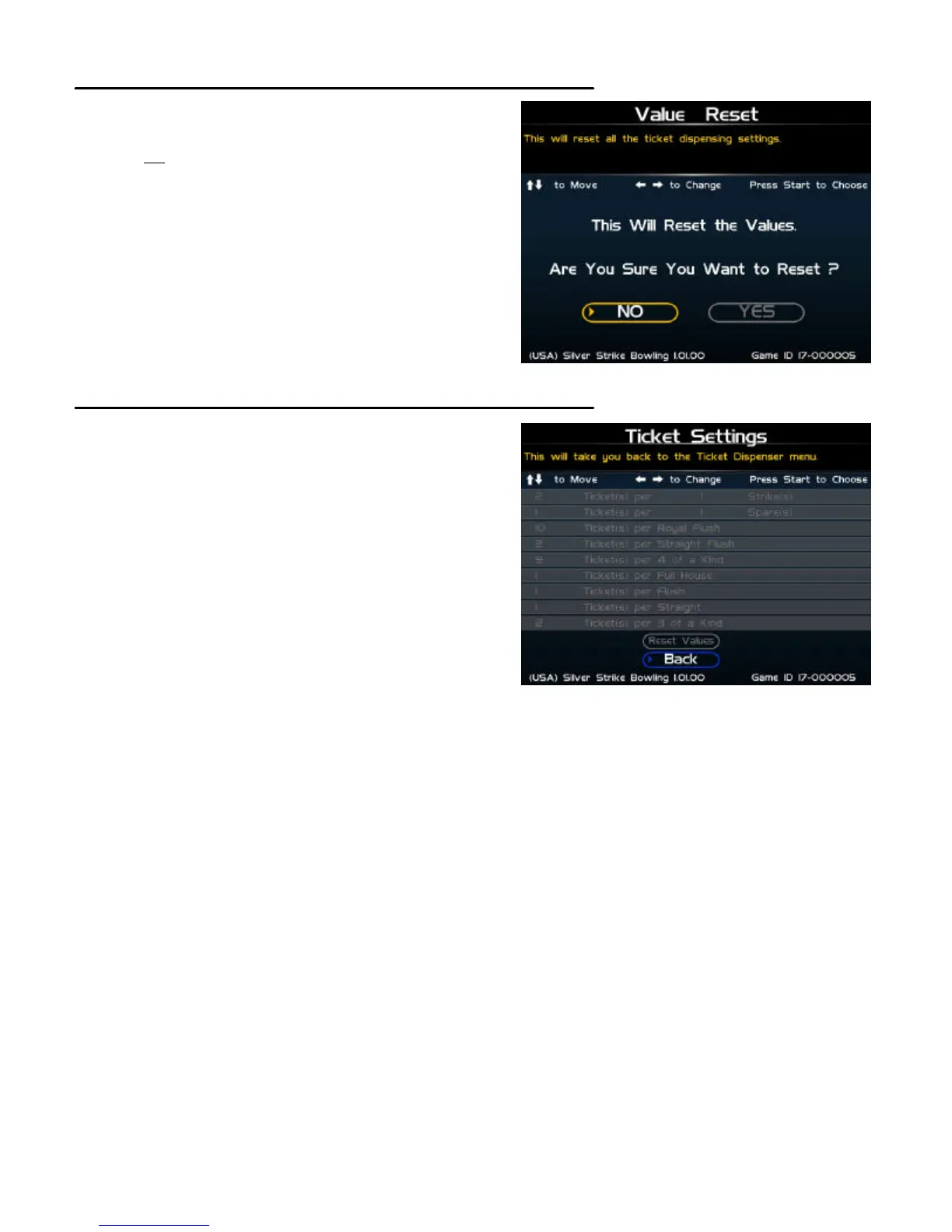 This option lets you adjust how many tickets are dispensed for a 3 of a Kind in Vegas Bowling.