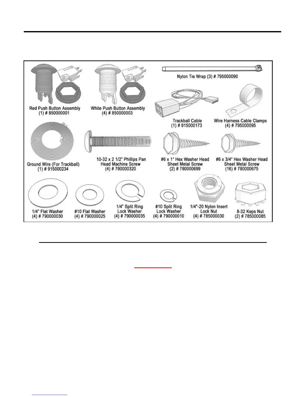 Keep in mind most of these basic parts like screws/washers can be found at any hardware store.