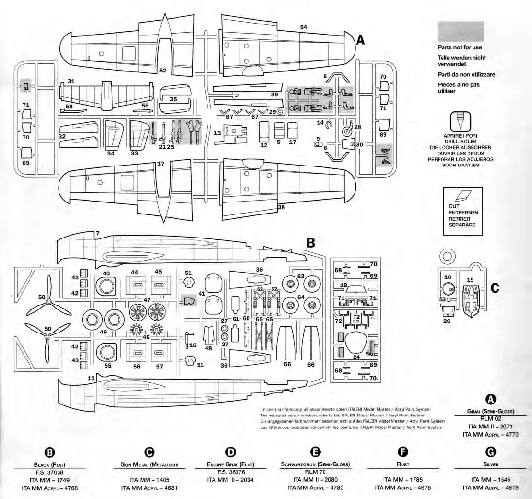 Italeri Do-217 J1 - Kit Contents and Paint Reference