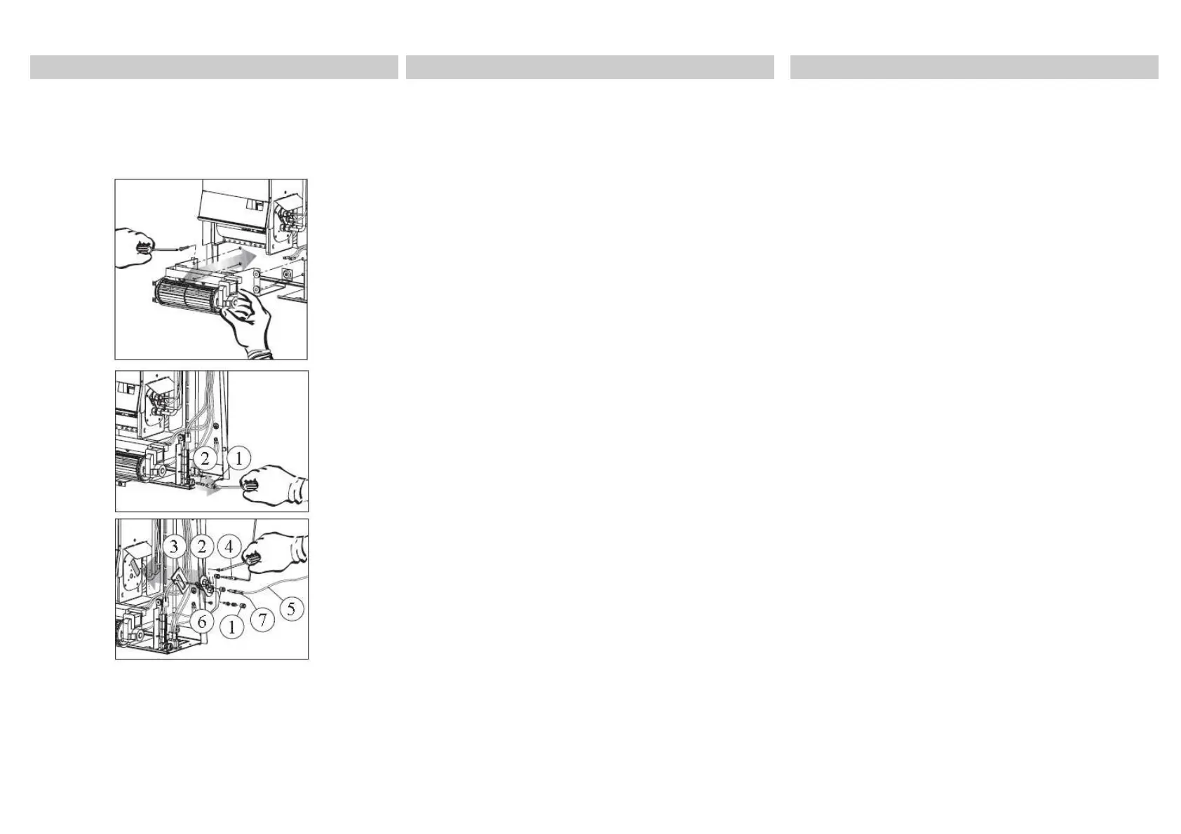 - Unscrew the 4 screws (2) that fasten the fan to the supports