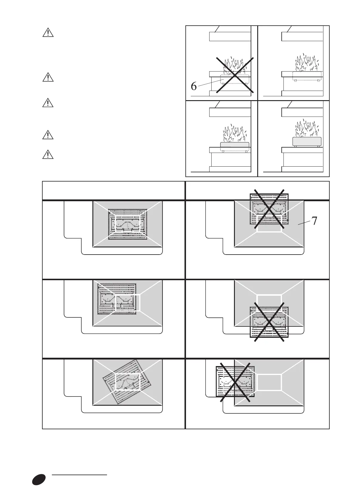 never be placed below the floor of the fire-