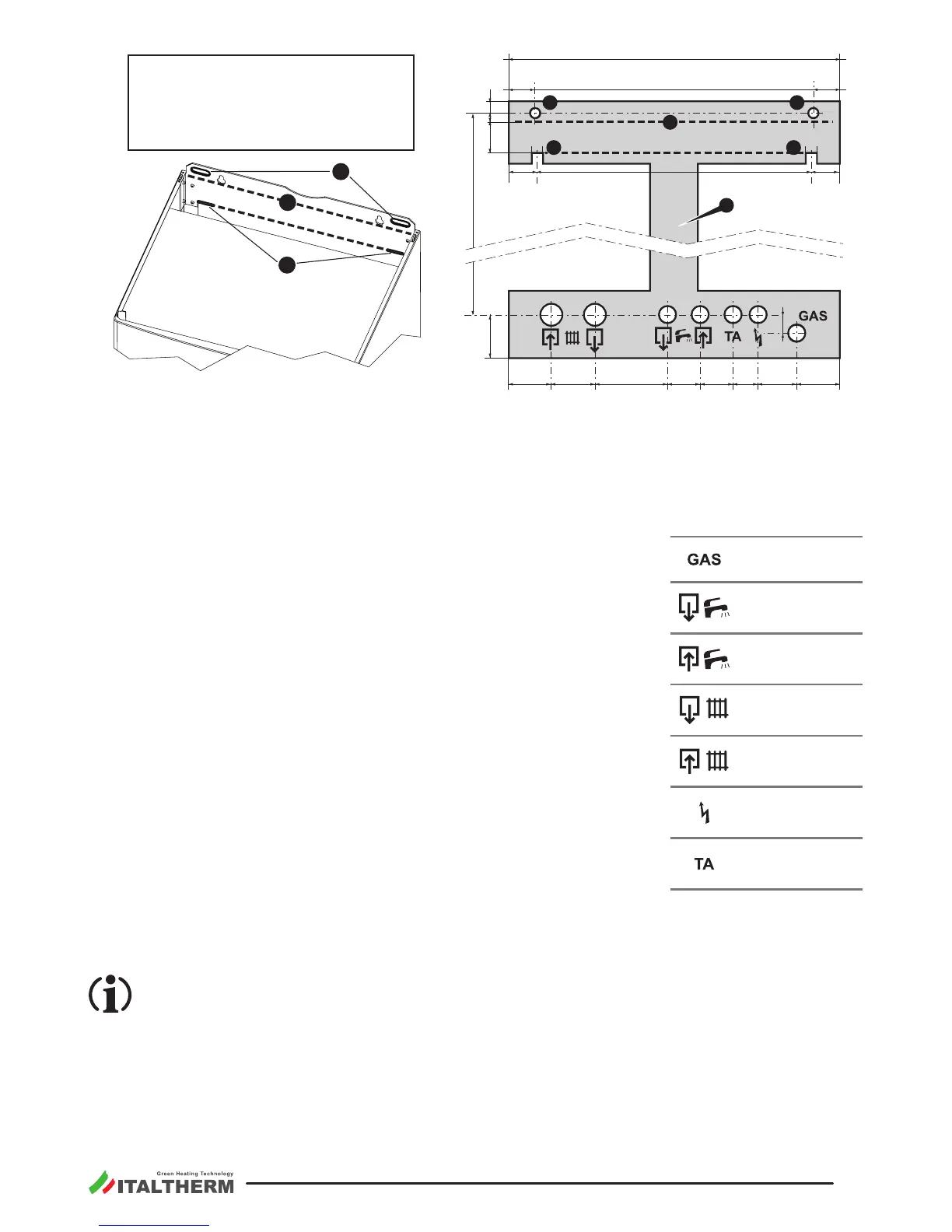 mensions and connecons" on page 13. The upper edge of boiler’s body