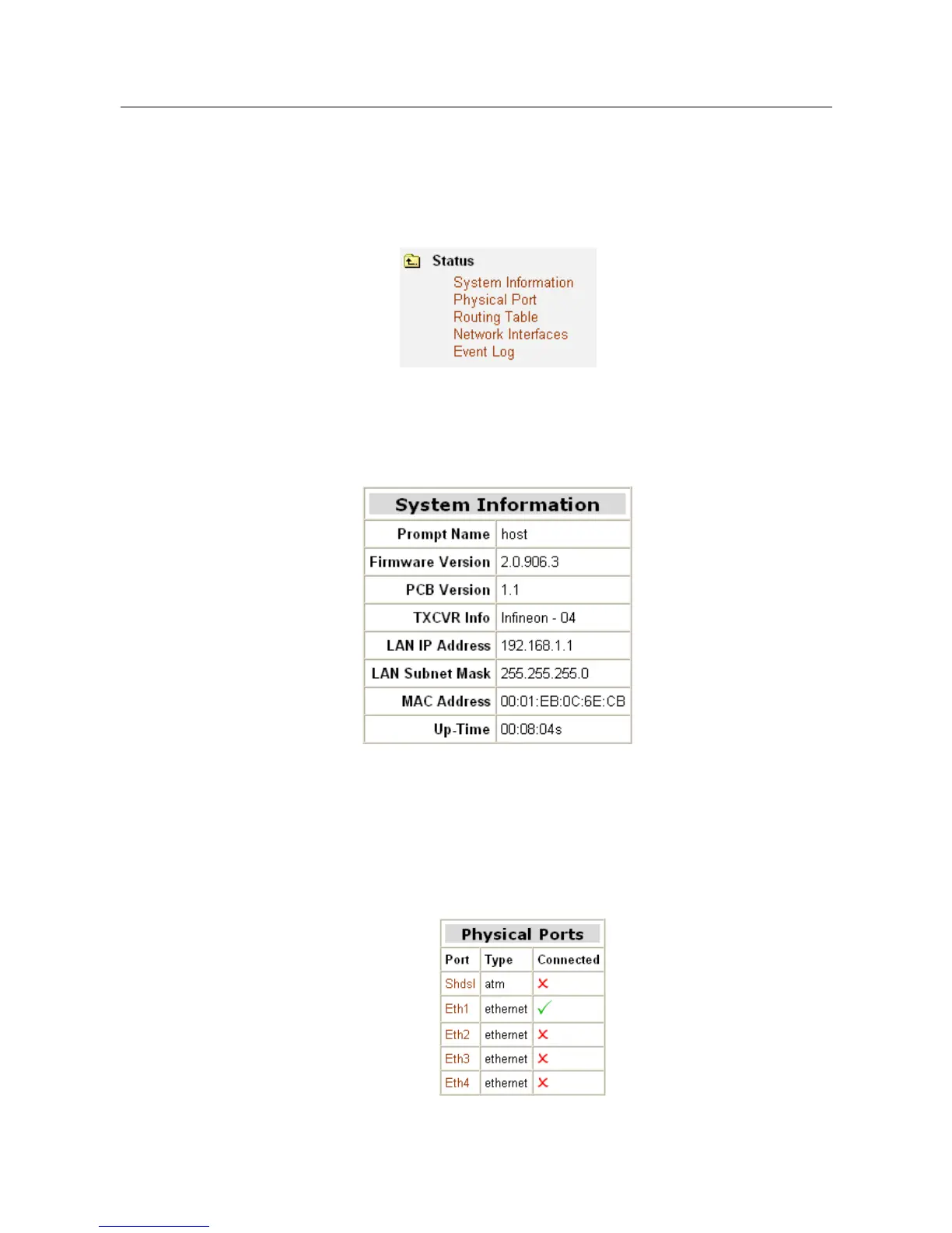 1. From the Status menu, click on Physical Port. The physical ports available on