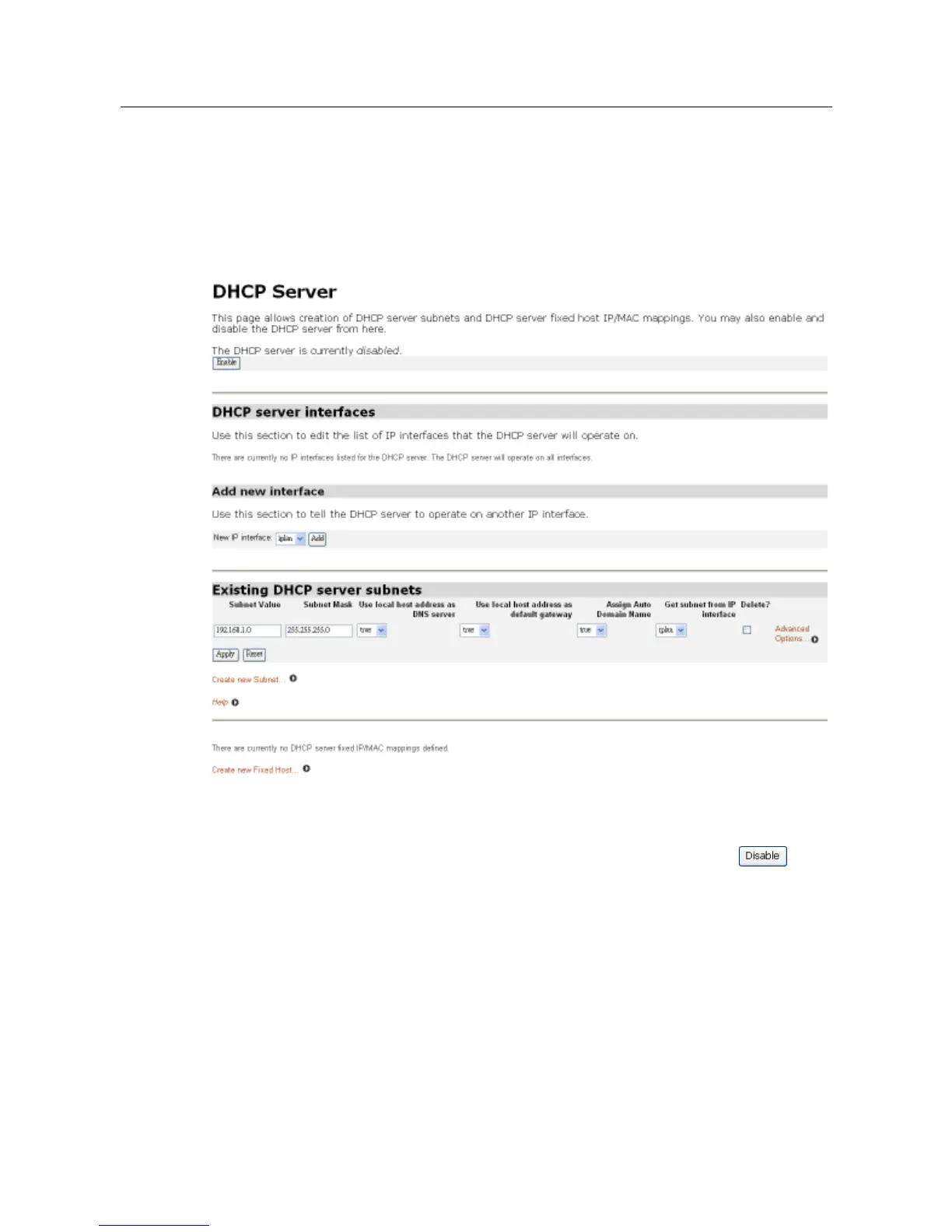 Enabling/disabling the DHCP server