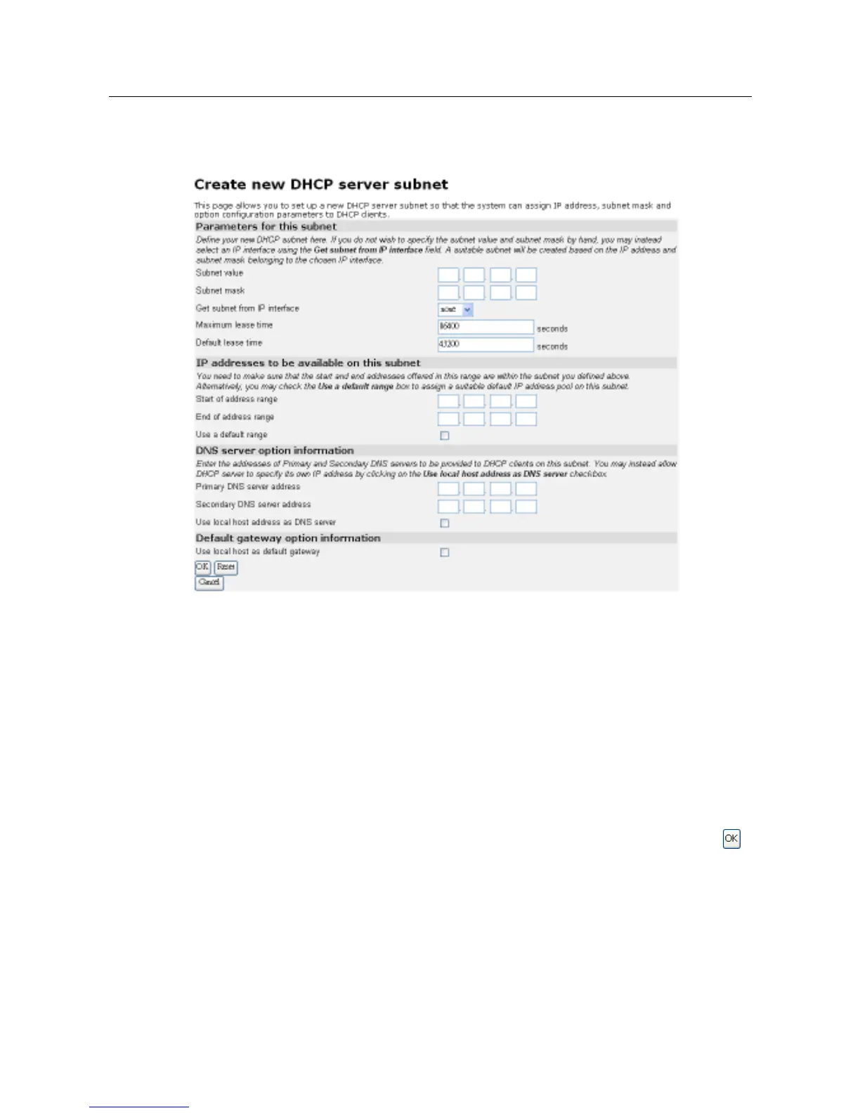 1. Click on the Create new Subnet link. The following page will be displayed: