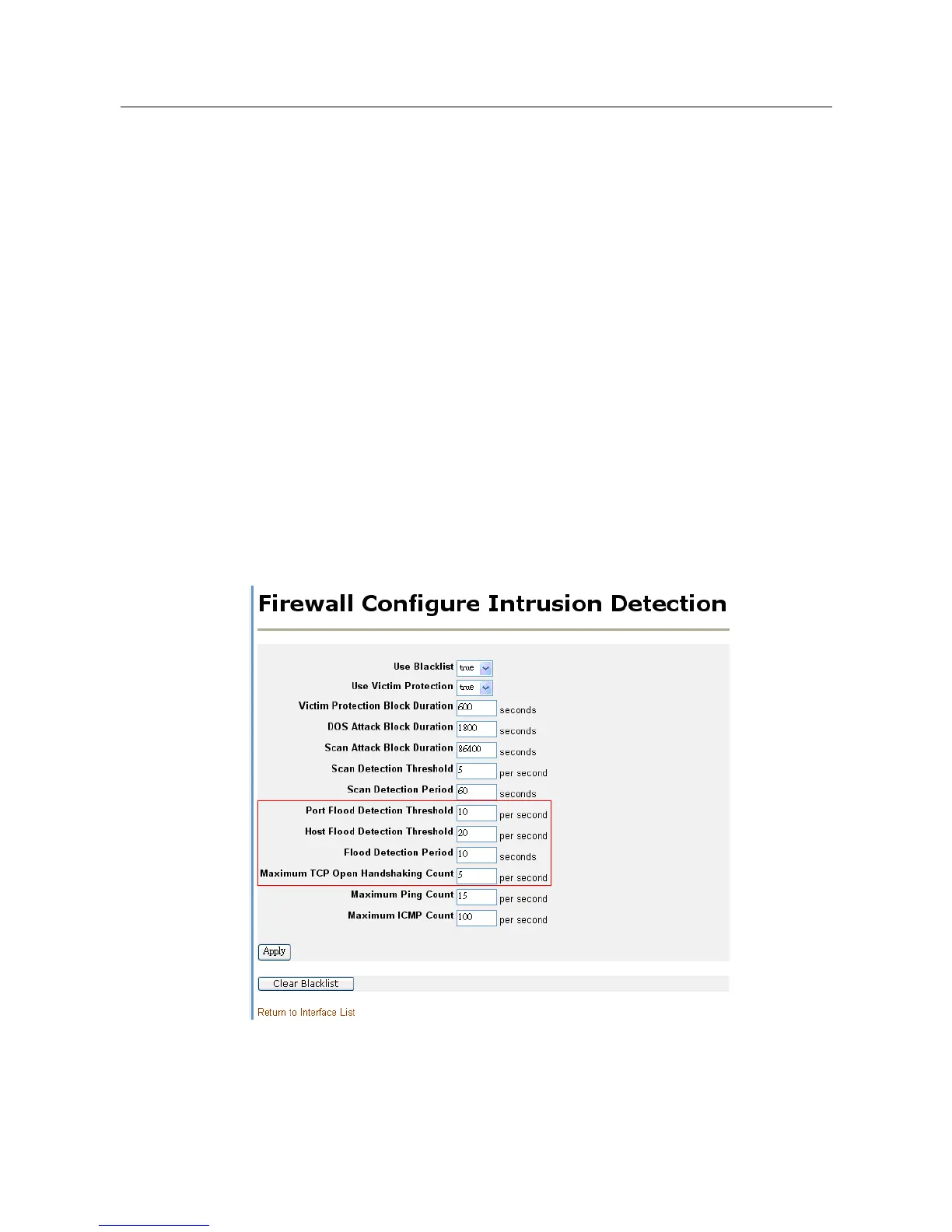 threshold and the port flood threshold) allowed per second over a 10 second period.