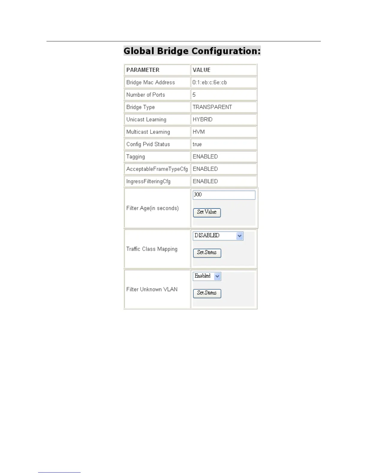 4. Unicast learning is non-configurable and always set to Hybrid, i.e. VLAN learning,