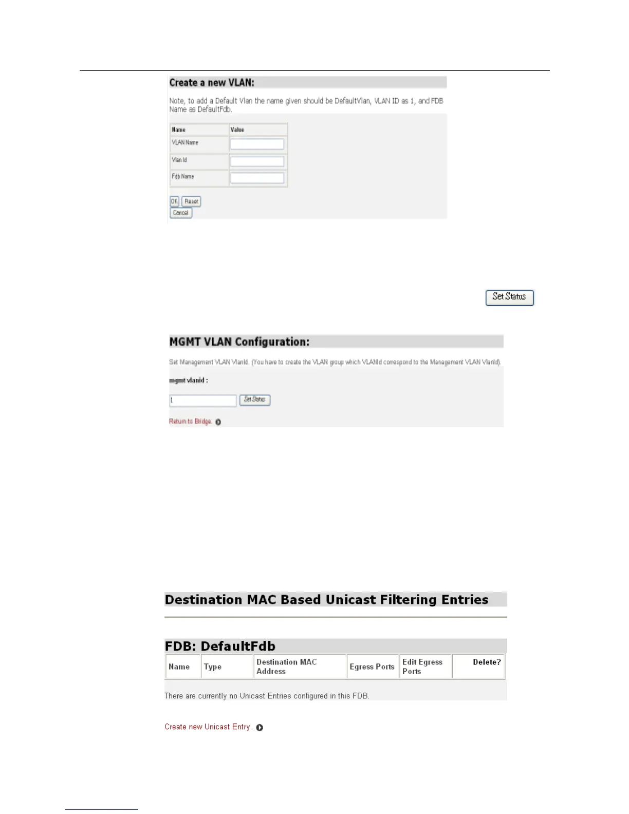 Entries, click Destination Based Unicast Filtering Entry Configuration under Bridge