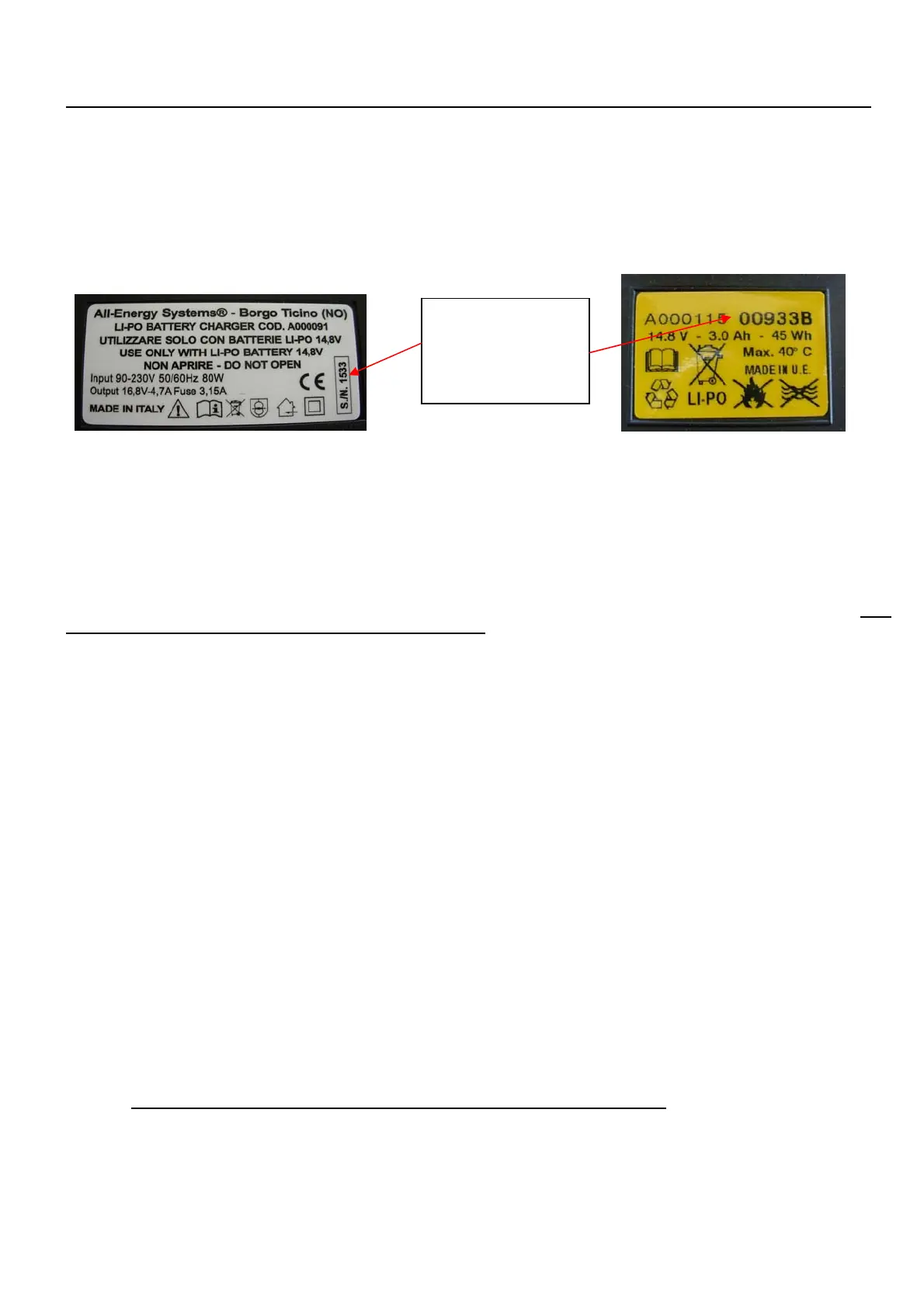 nell’alloggiamento batteria. Non utilizzare per scopi diversi dalla carica dell’apposita batteria litio polimeri di ns. fornitura. NON