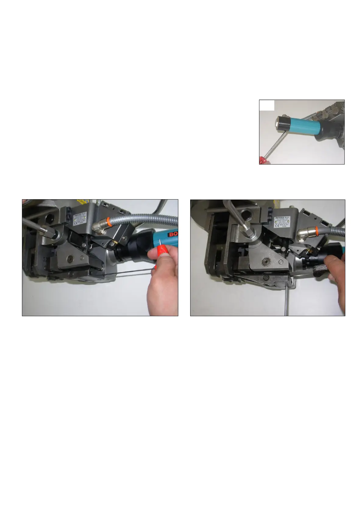 UK - It is possible to adjust the height of the feed-wheel in order to change the teeth pressure on strap; unscrew the locking screw