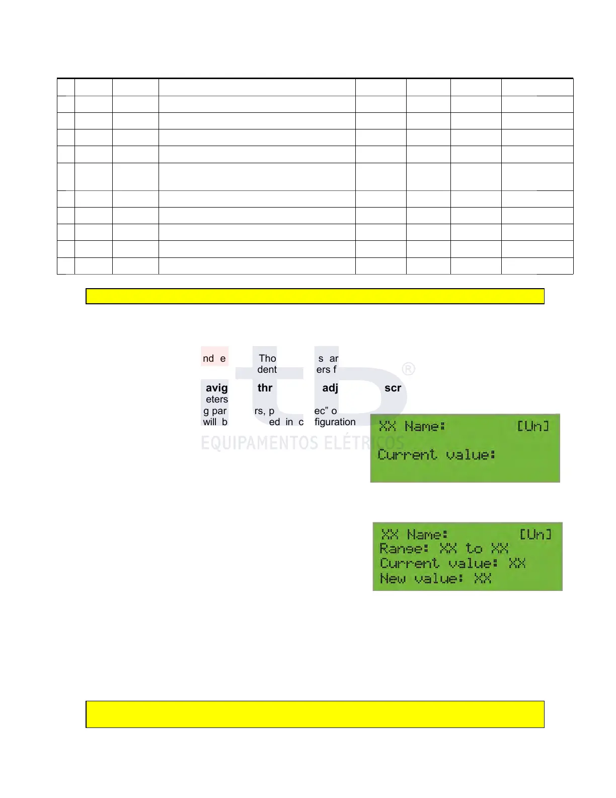 6. To return to standard screen from setting visualization screen, press twice “Selec” key;