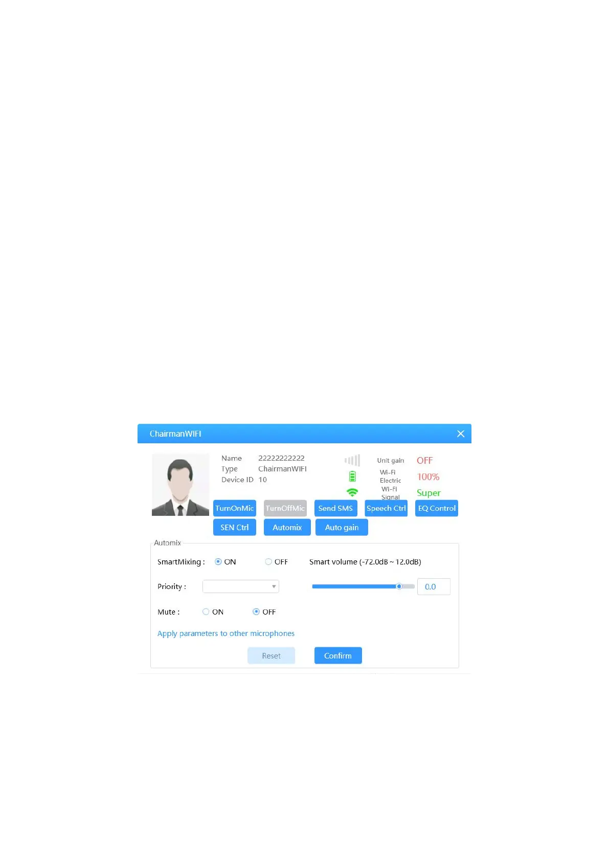 Smart Mix: Automix on/off button, the channel that needs automix should turn on this button. It