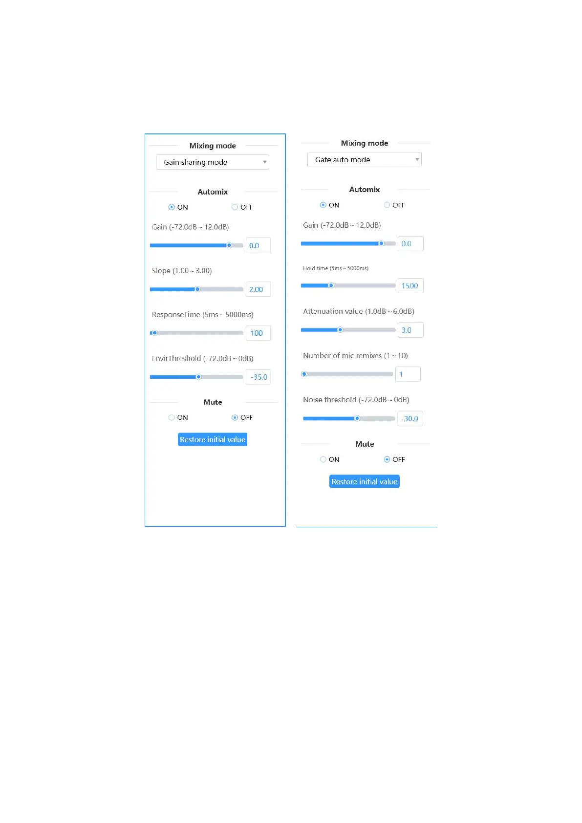 4.1.1 There are two mixing modes: Gain Sharing Mode and Gate Auto Mode. This function can