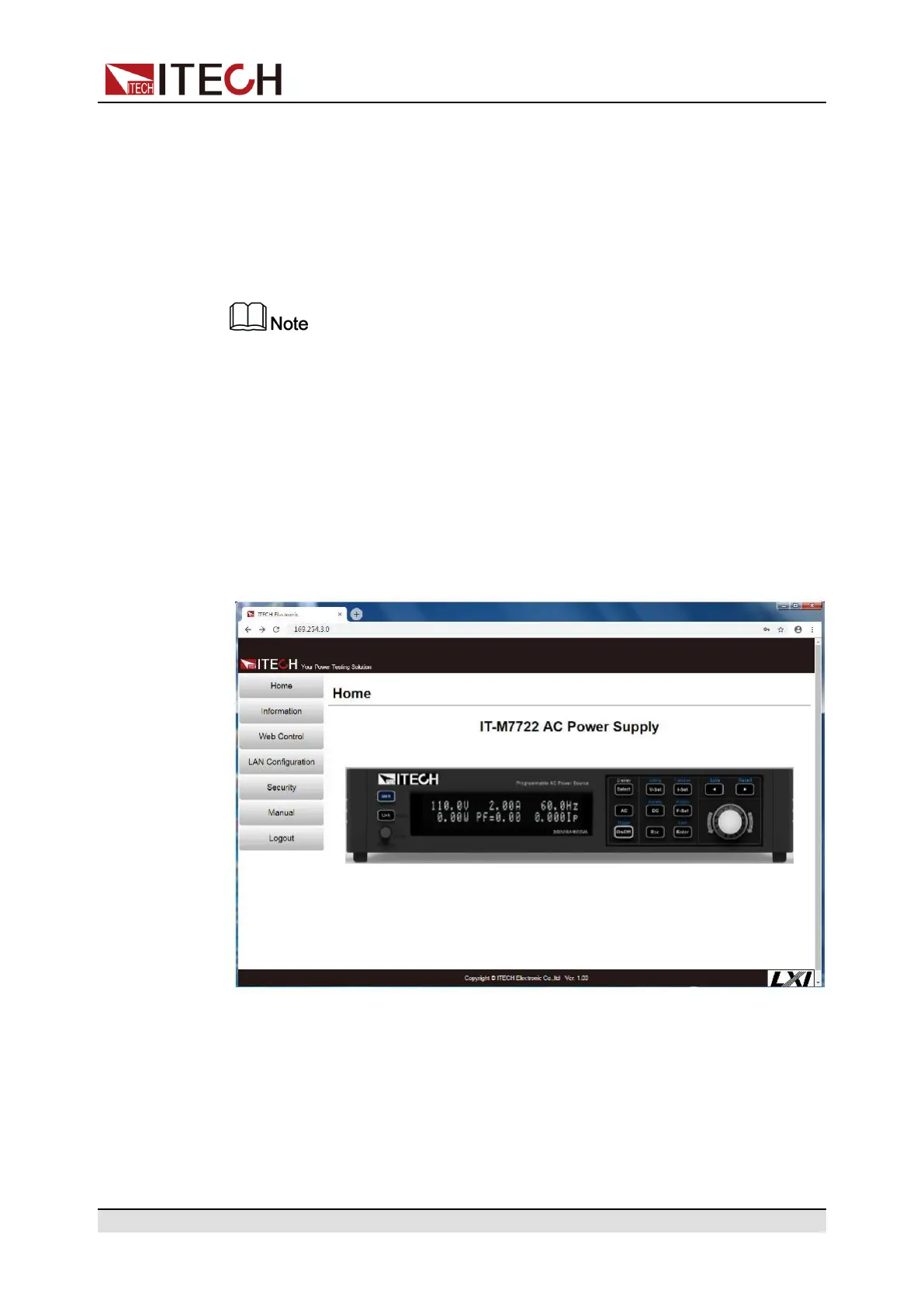 The instrument has a built-in Http server for monitoring and controlling the in-