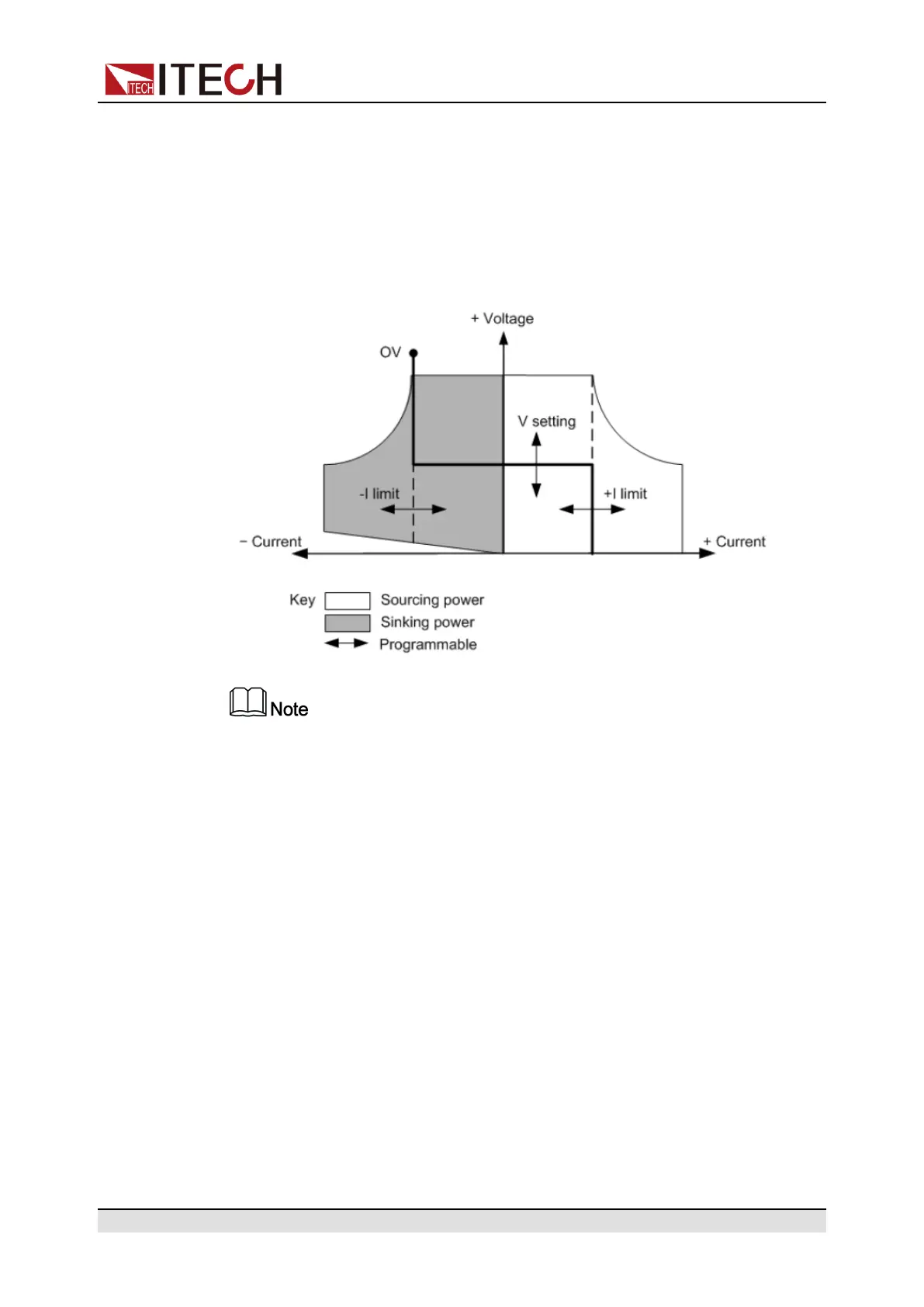 a source (sourcing power). The area in the shaded quadrants shows the output