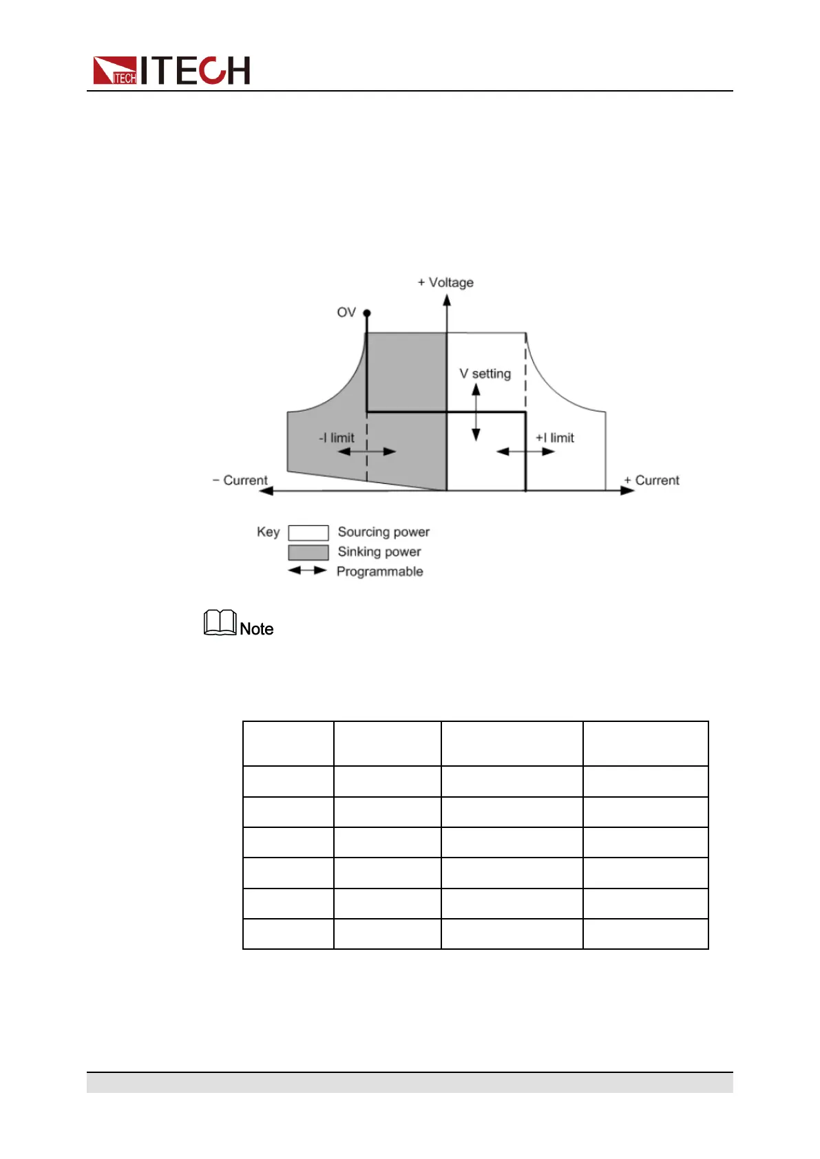 a source (sourcing power). The area in the shaded quadrants shows the output