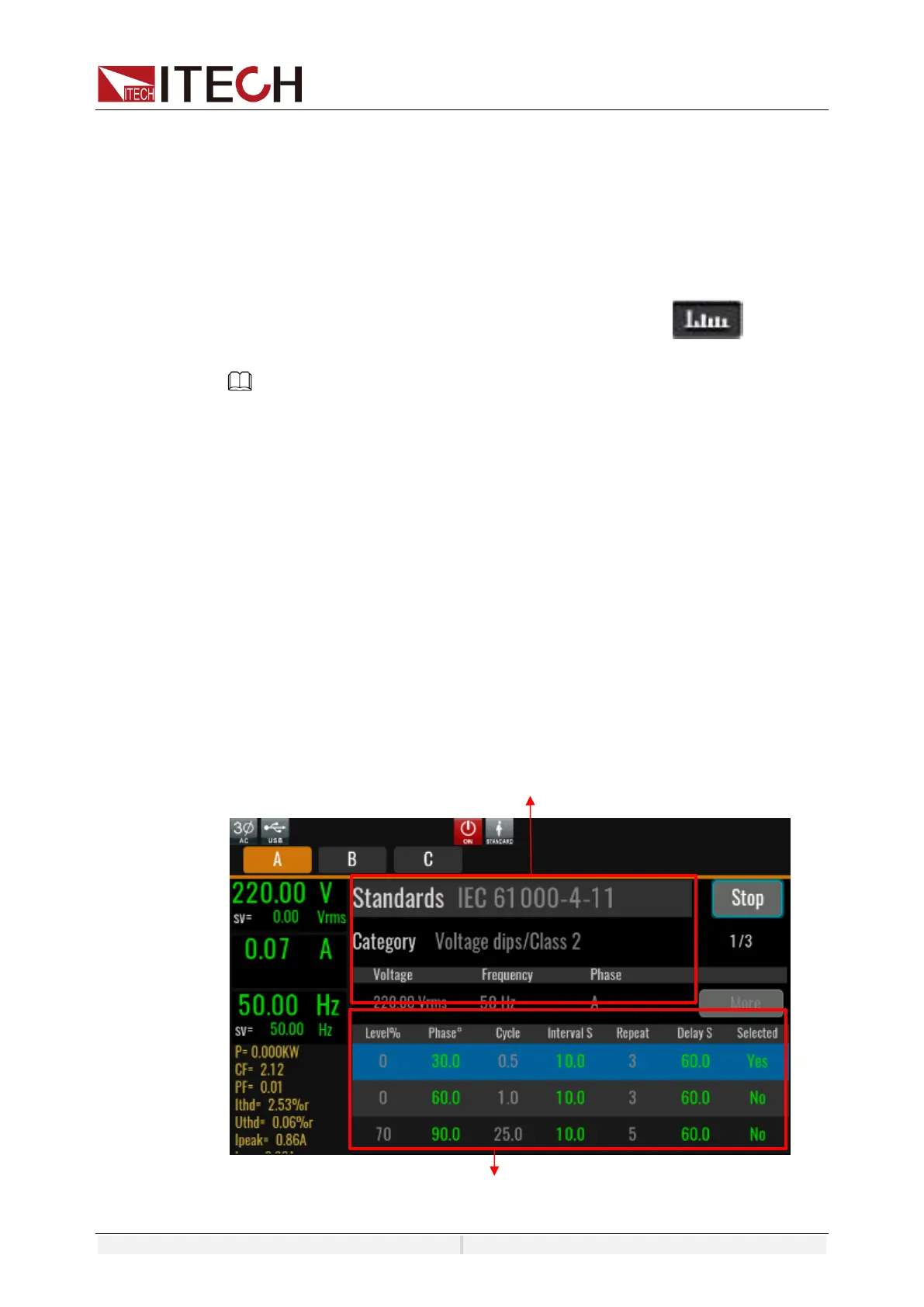 Take IEC 61000-4-11 as an example to introduce the interface display and how