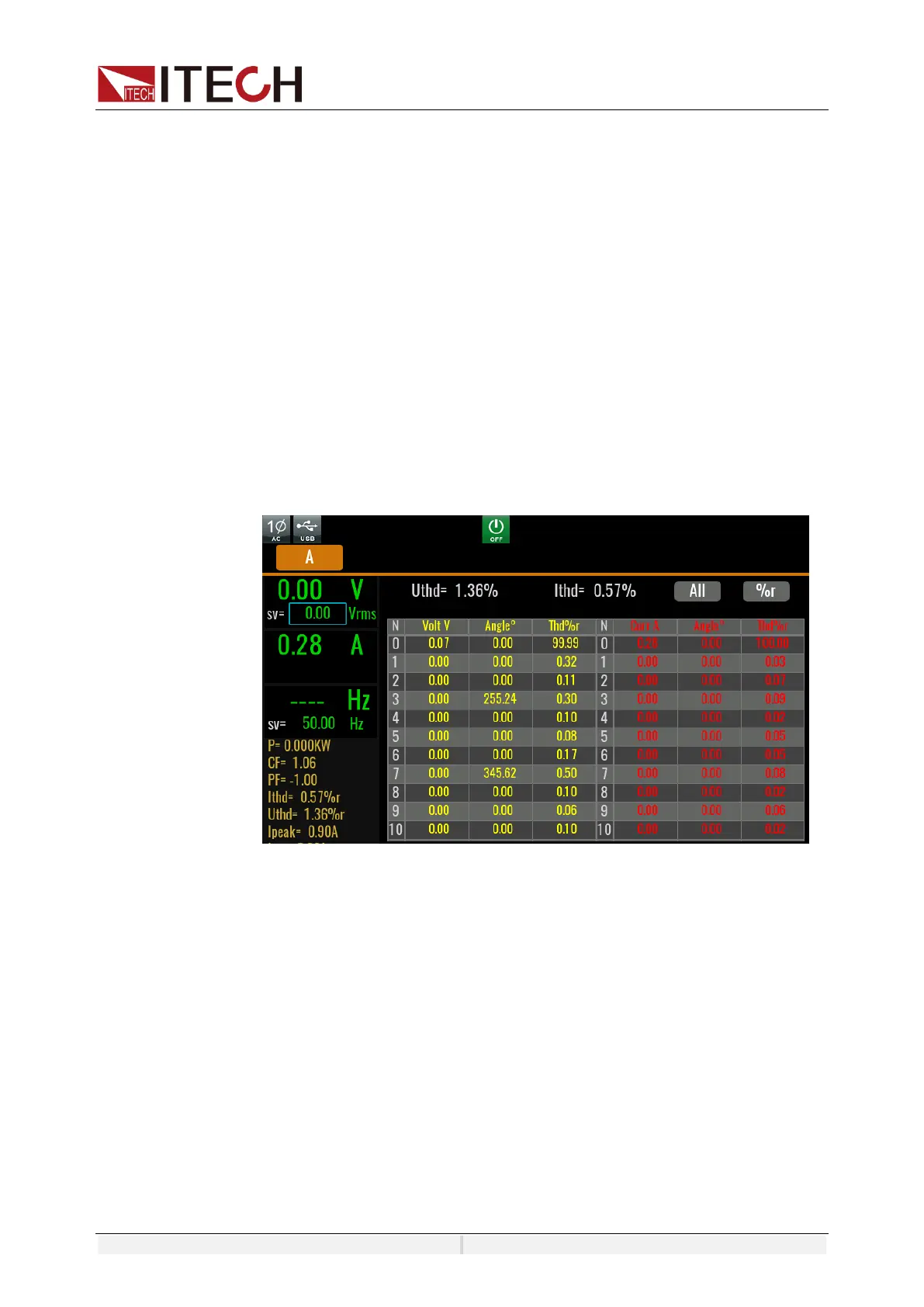phase. Under three-phase mode, display total harmonic distortion (THD) factors
