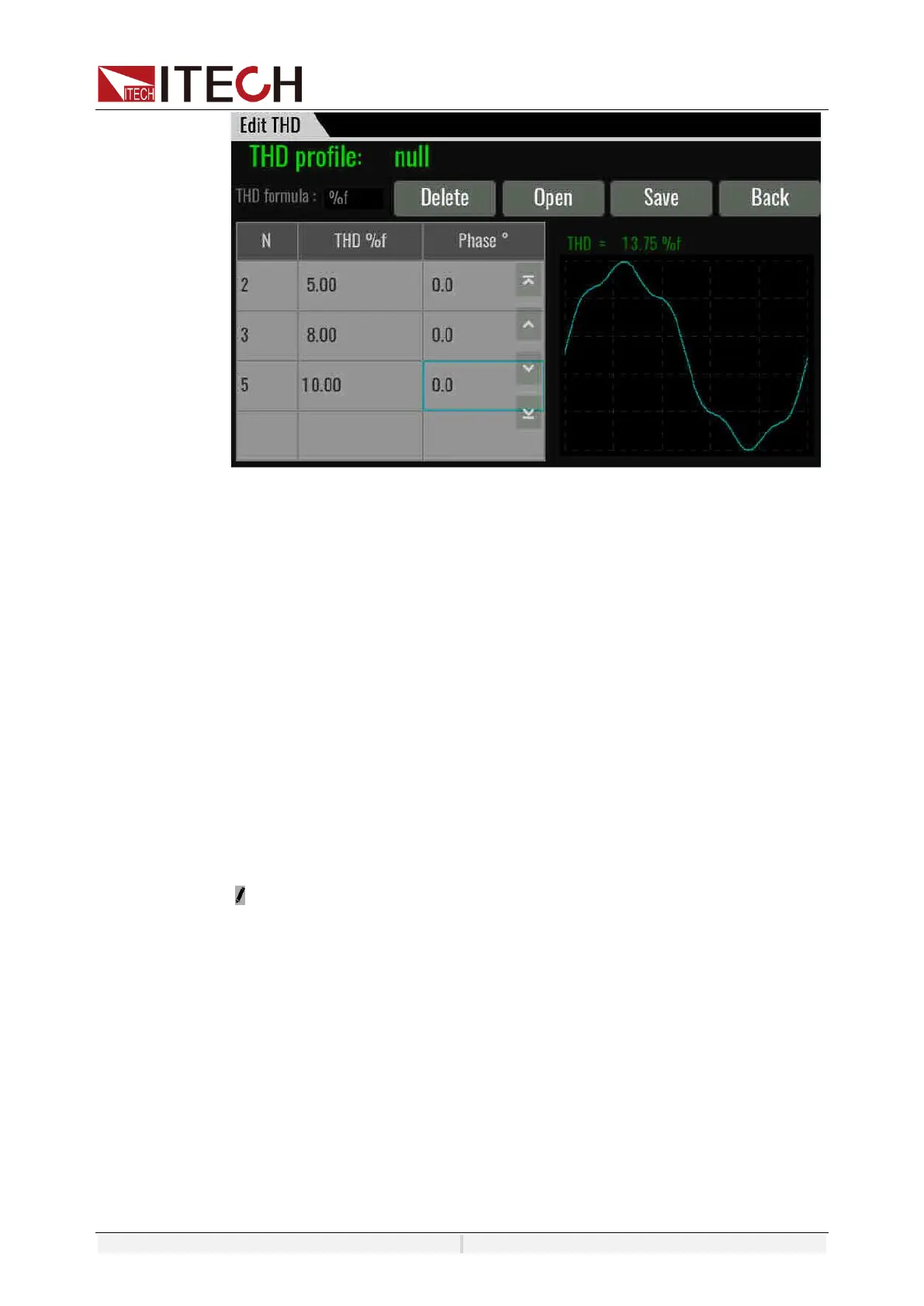 THD=: Total distortion rate calculated based on the user Thd configuration.
