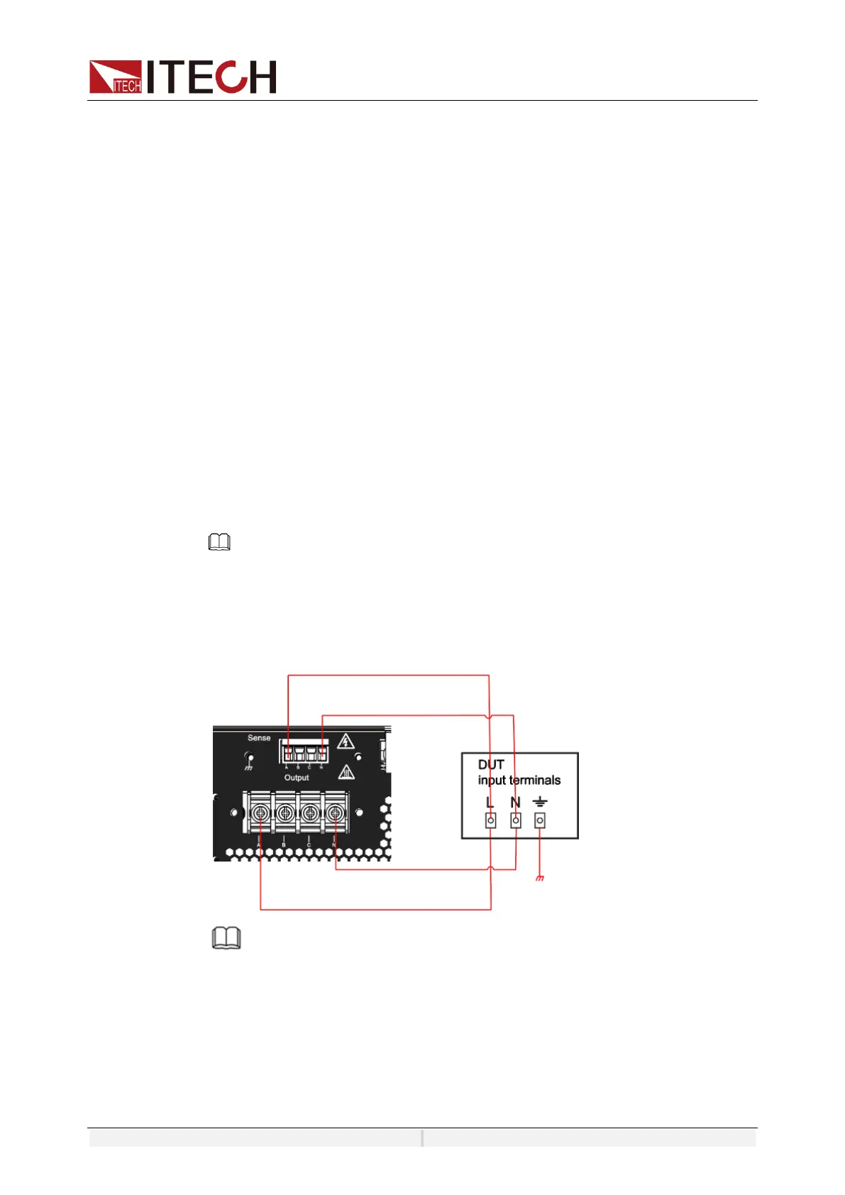terminal on the rear panel of the instrument to the DUT to ensure the safe
