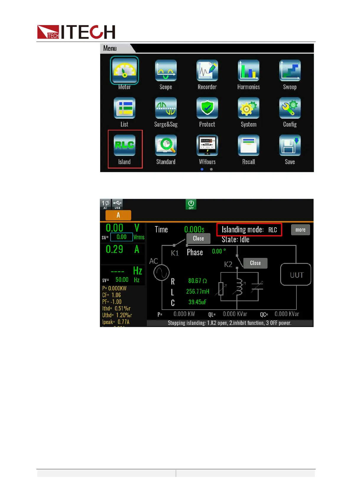 5. Open the K1 switch, enable the islanding status. Test the anti-islanding