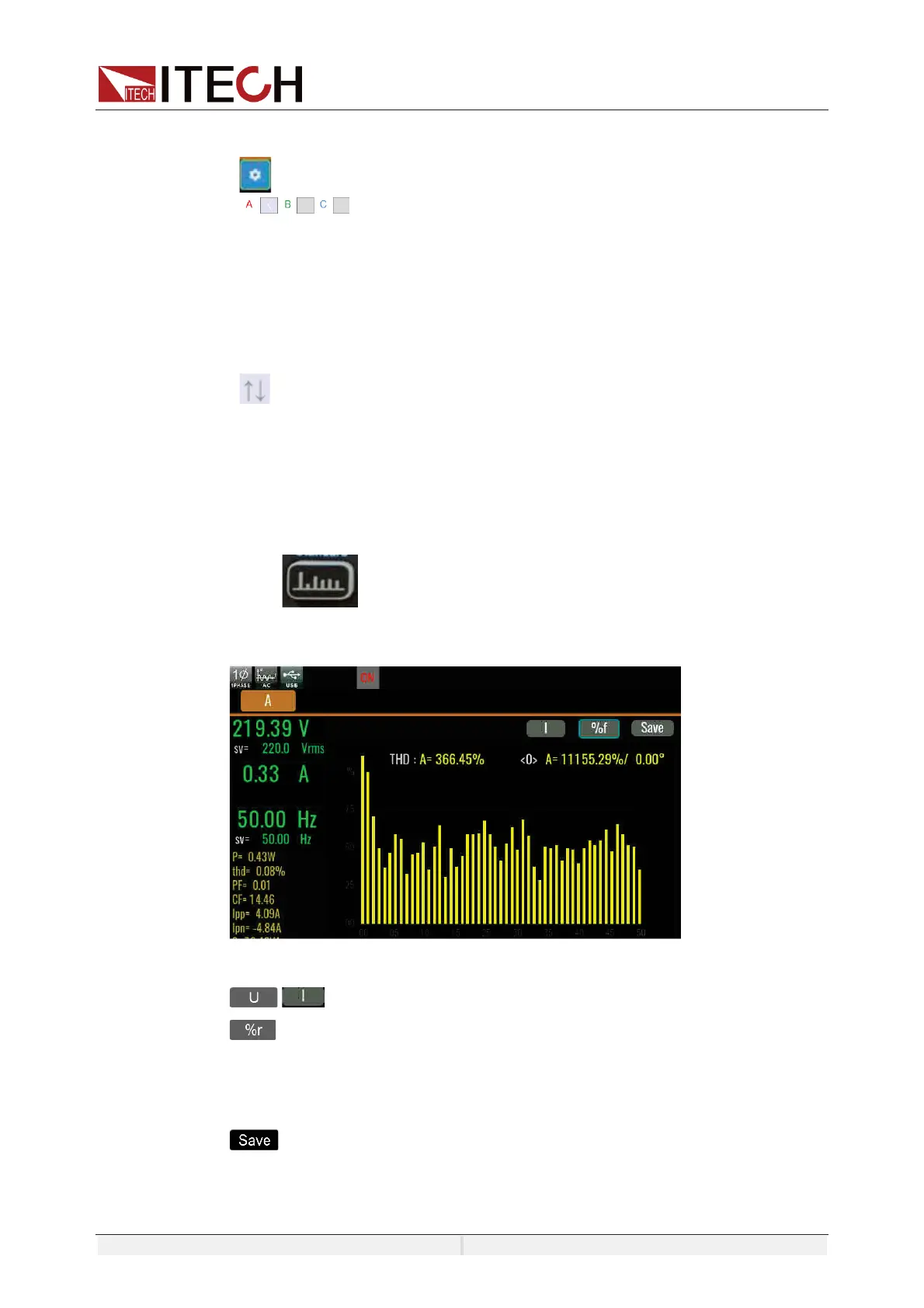 phase. Under three-phase mode, display total harmonic distortion (THD) factors