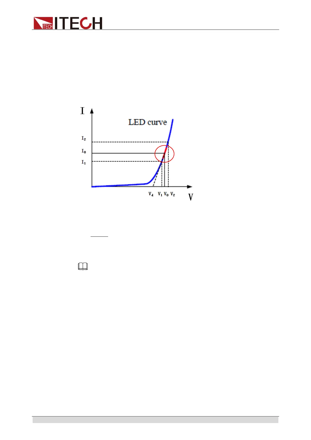 The value of V2, V1, I2 and I1 should be close to the static working point of LED as shown