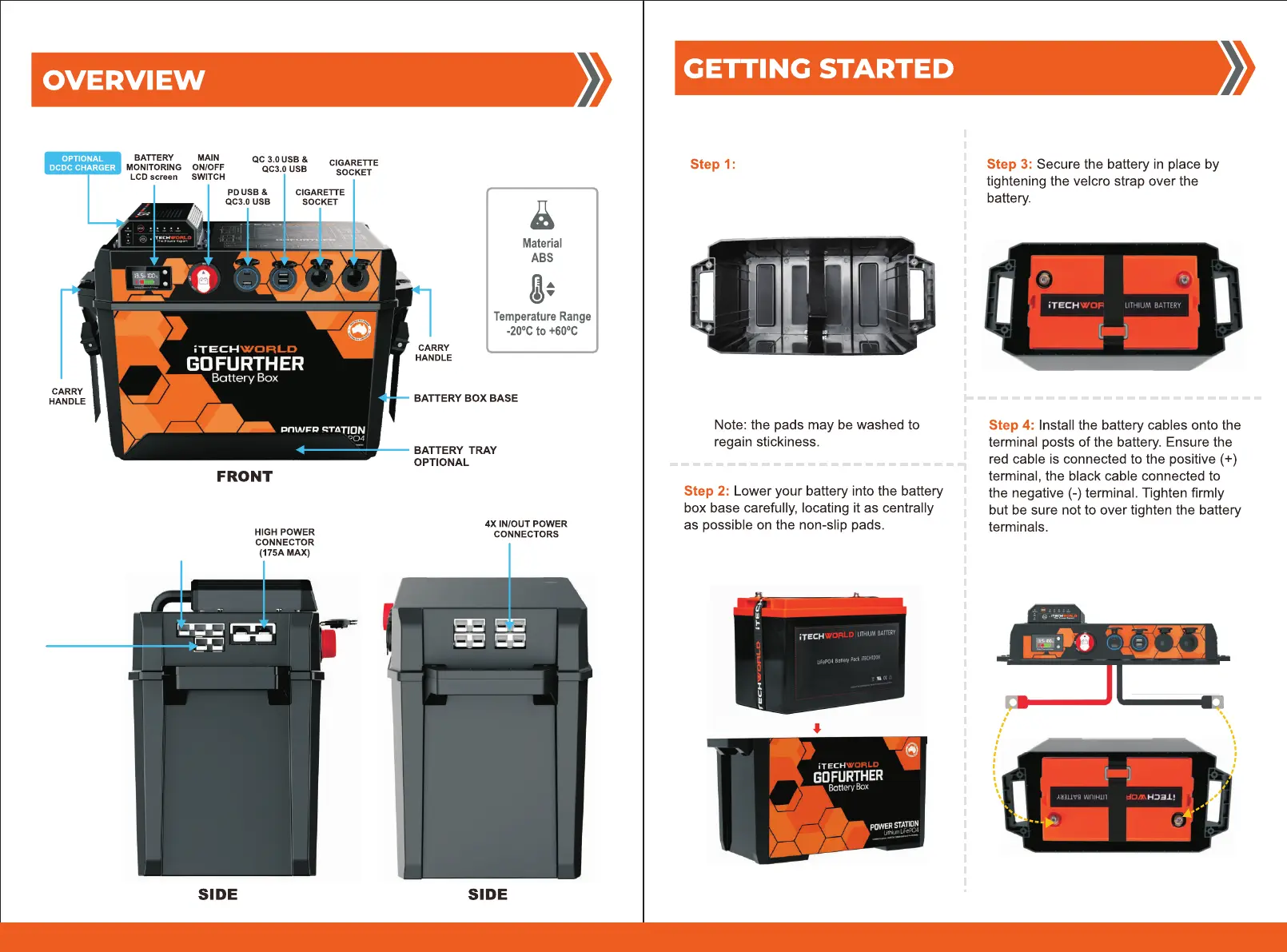 iTechworld GoFurther - Getting Started with GoFurther; Prepare Battery Box Base; Install Battery into Box; Secure Battery with Strap