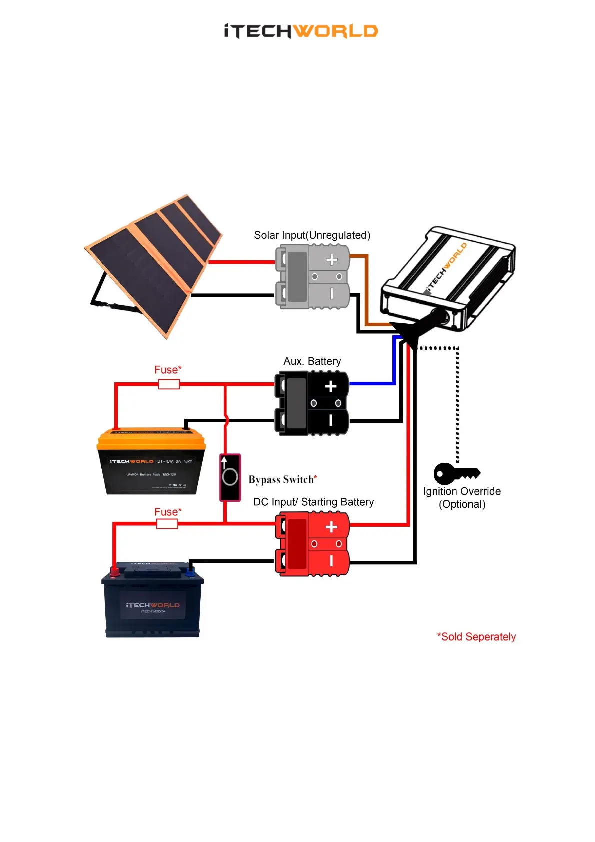 2. Both batteries must share the same negative ground(the iTECHBCDC25 has an internal