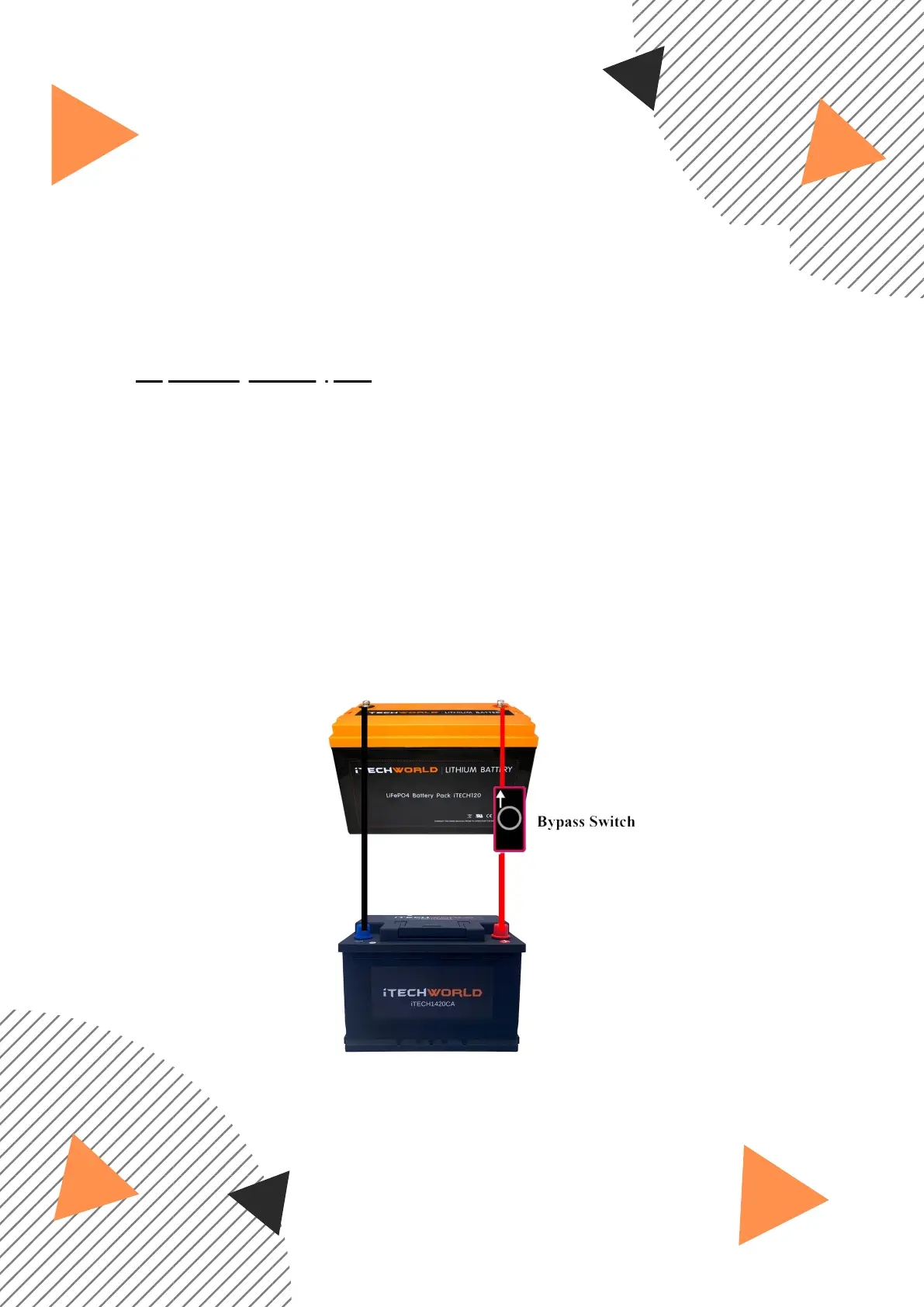 of the iTECH120X battery and your main starting battery, or any