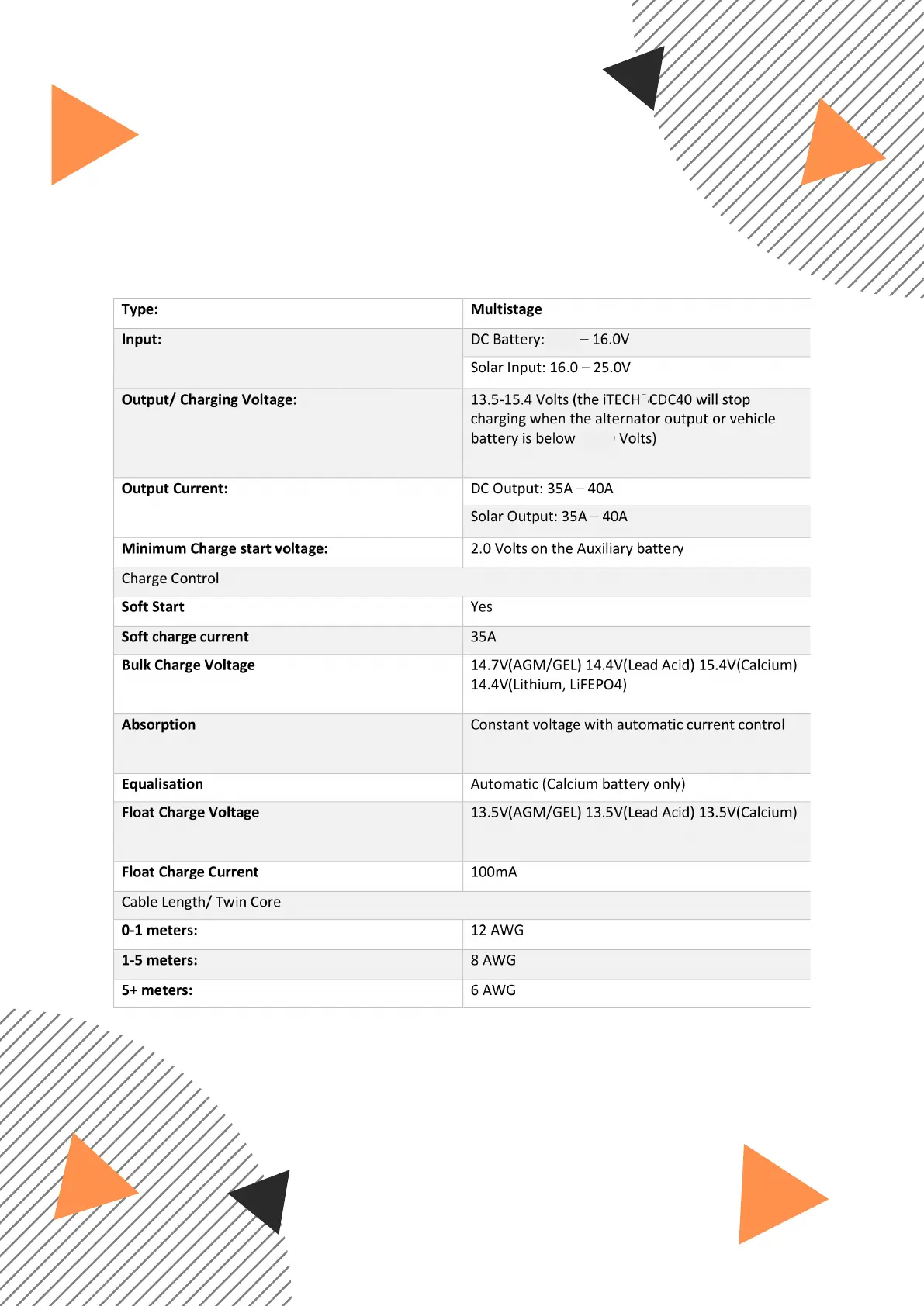 iTechworld ITECHDCDC40 - Specifications and Wiring Gauge