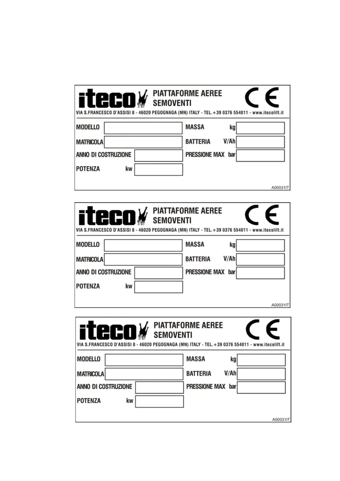 ing identication data; it is advised to full in the serial number of the corresponding model in order to