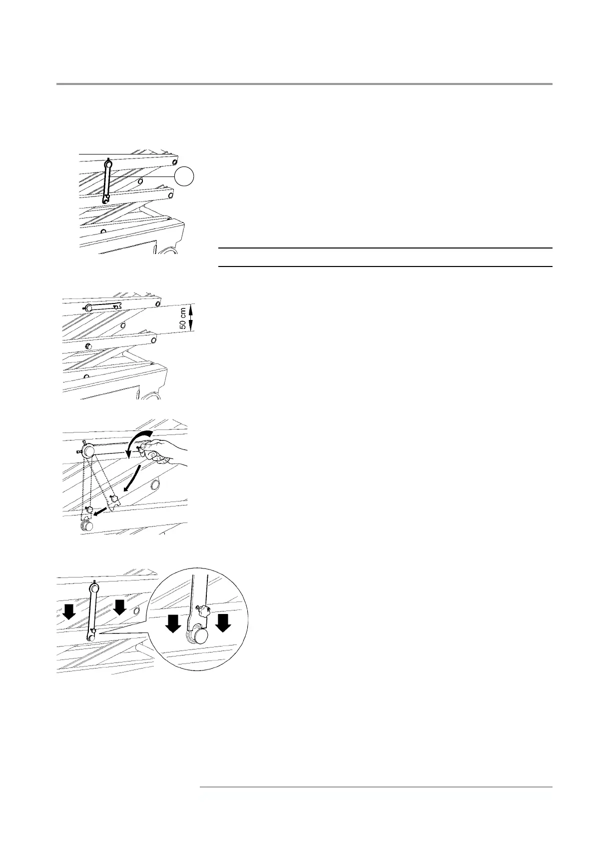 • Lift the platform so as the distance between scissors is 50 cm.