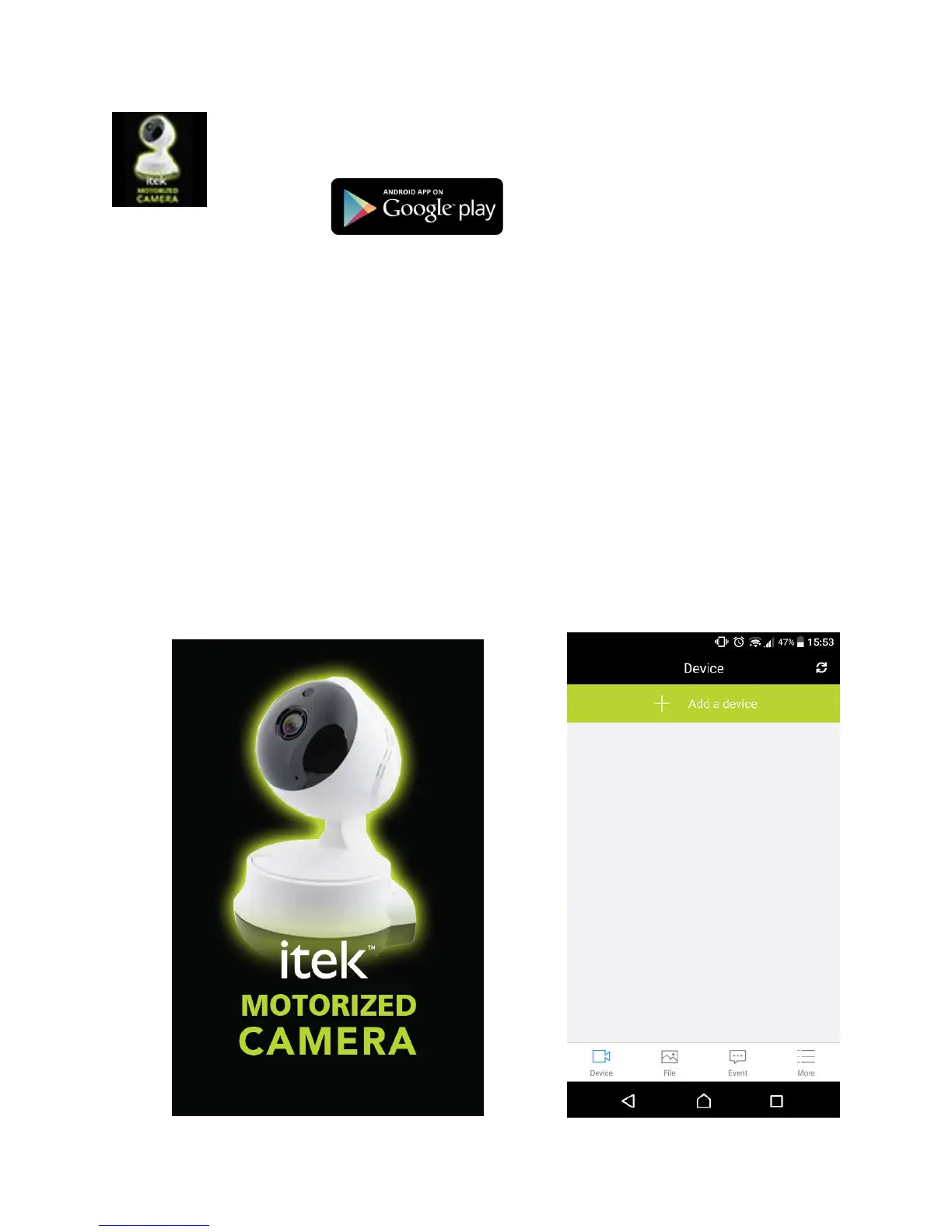 4. Turn on the “itek Camera” app, press ‘Add a device’, and ‘Quick Wi-Fi configuration’,