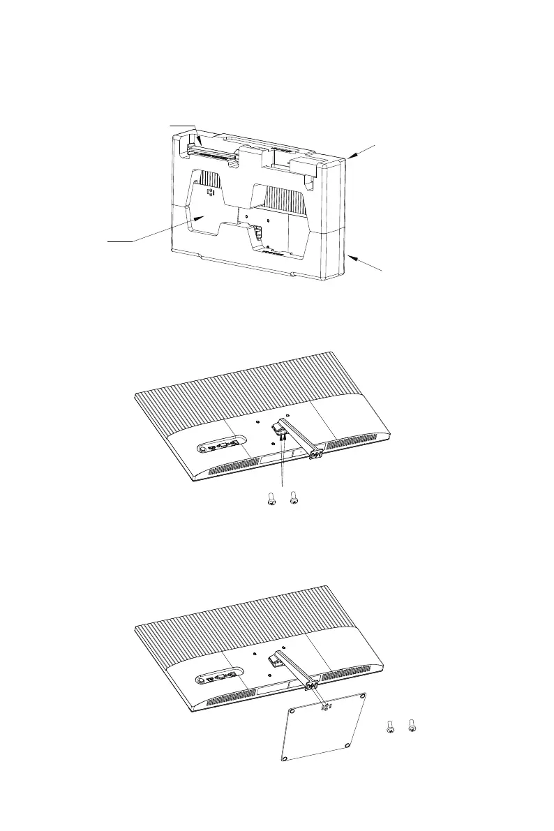 2. Estrarre lo stand e utilizzando due viti fissarlo al supporto rotante del monitor.
