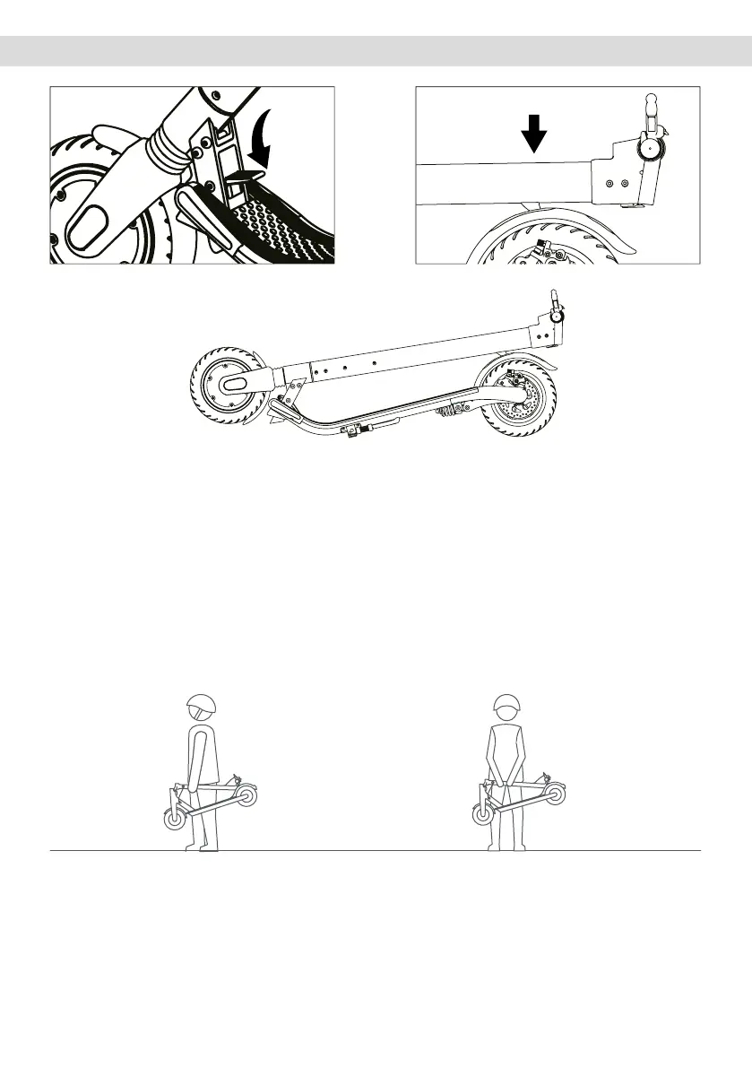3. Σταθείτε δίπλα στο e-scooter και οδηγήστε το τιμόνι προς τα κάτω με το ένα χέρι.