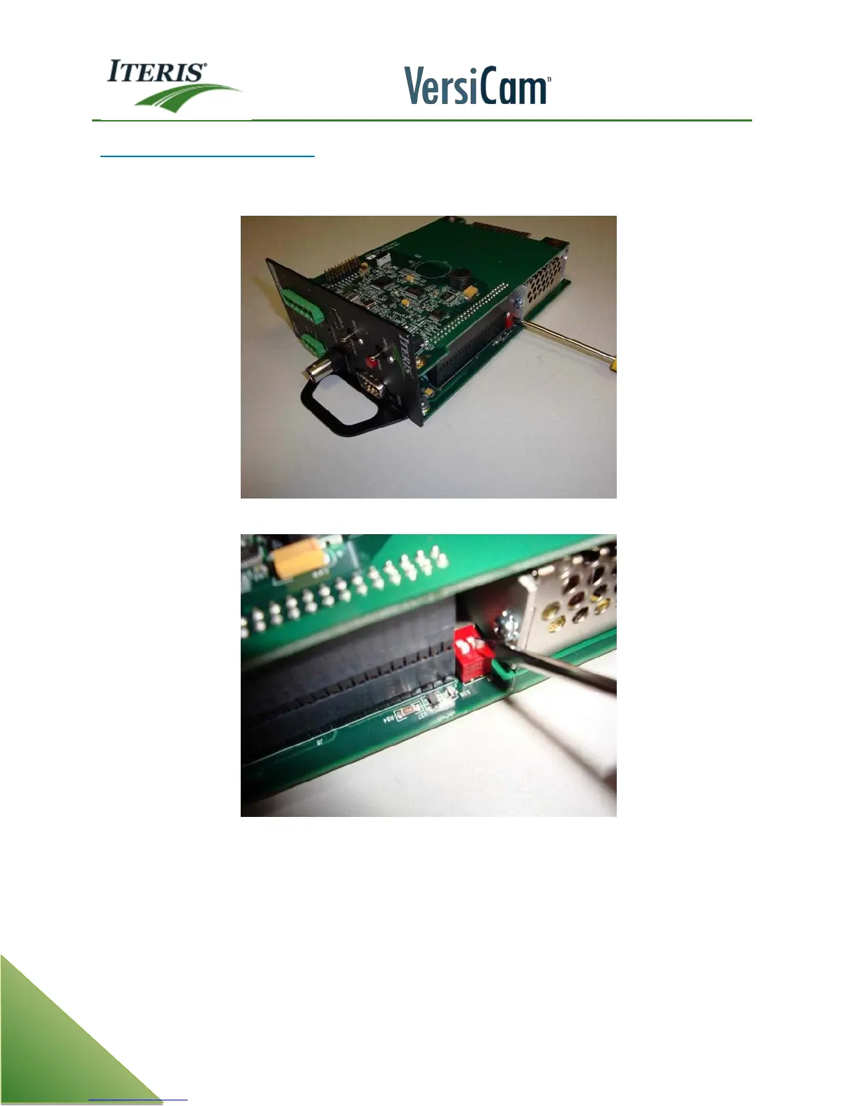 Screwdriver Pointing to the DIP Switches On VersiCam Module