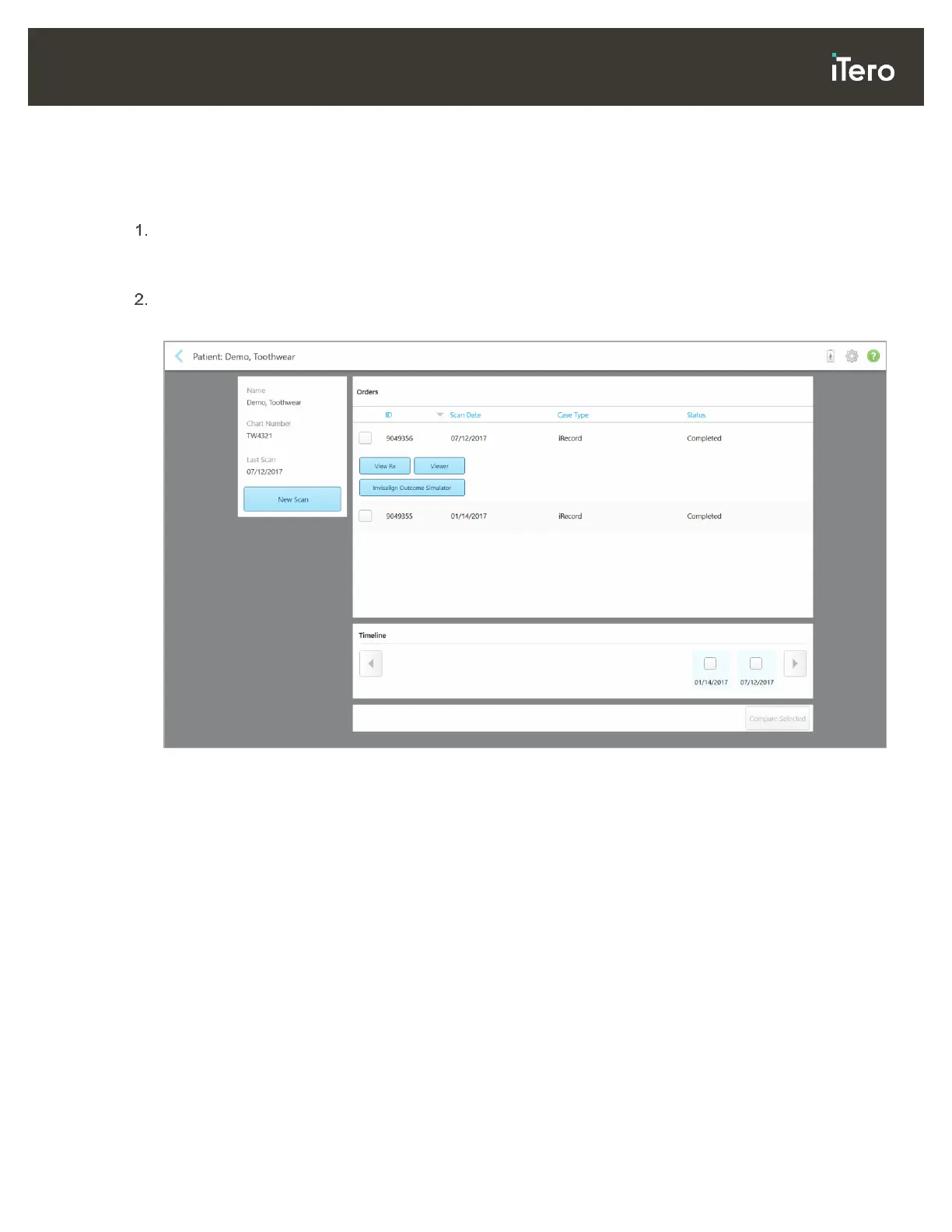 o Compare 2 previous scans using iTero TimeLapse technology, described in section 5.5.1