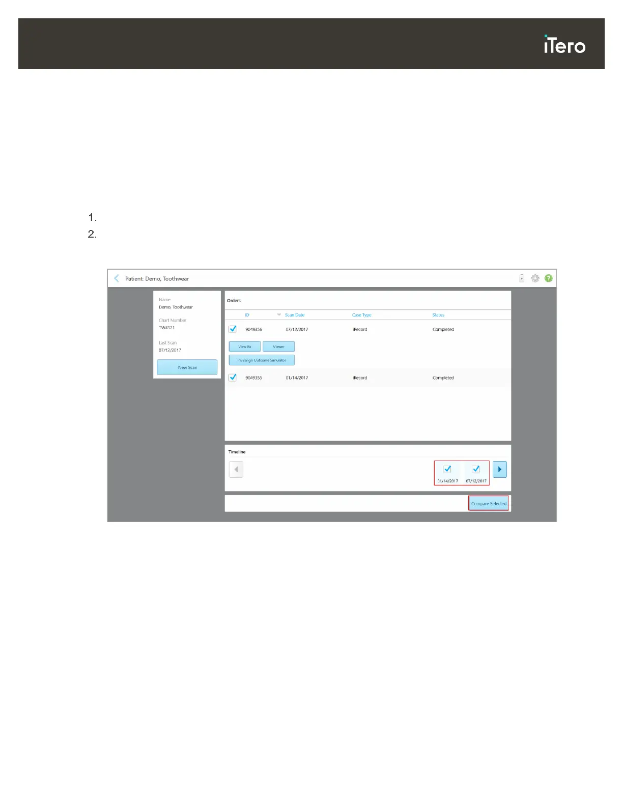 Figure 112: iTero TimeLapse – selecting the scans to compare
