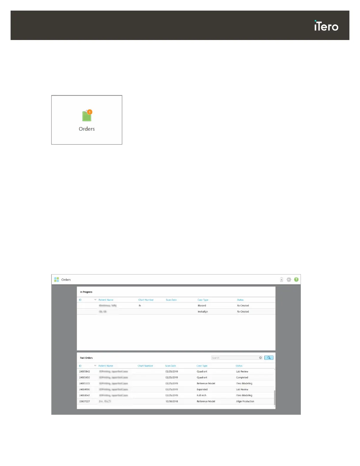 You can view the following details for each order: the patient’s name, the scan date, case type, and the status