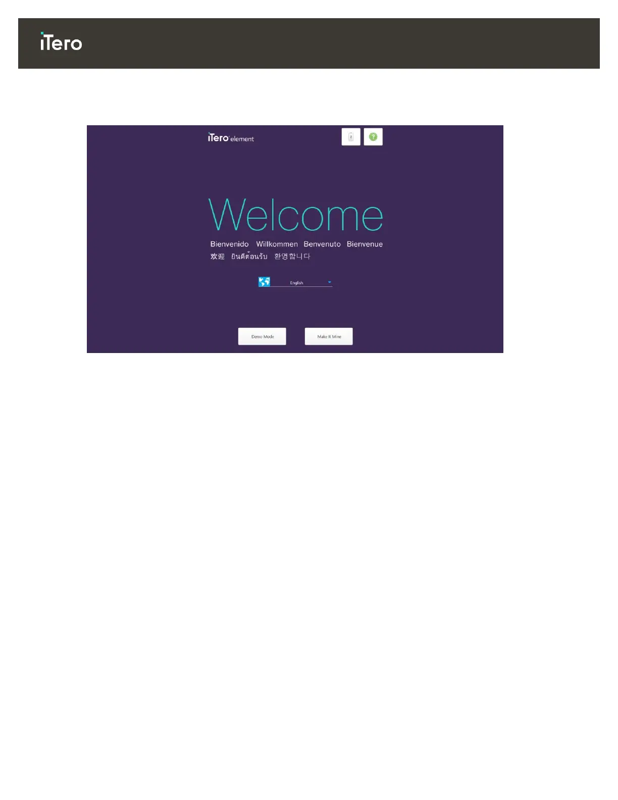 screen when logging in for the first time, or at any point by tapping the iTero logo on the home screen.
