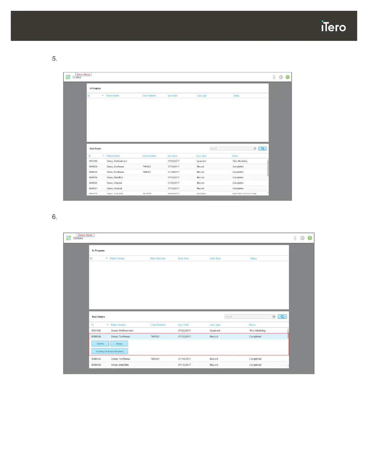 To view the demo cases, tap Orders to display a list of orders that are currently in progress as well as a