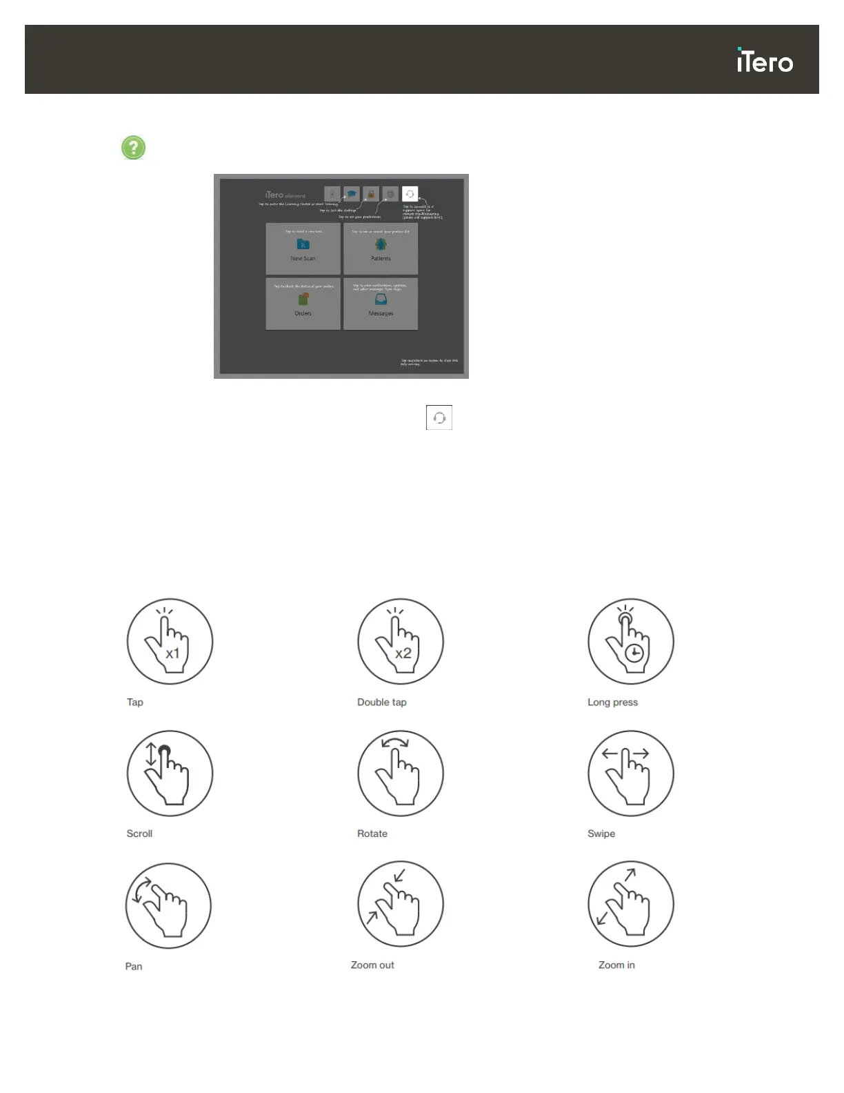 The iTero software supports touch-screen (also known as multi-touch) gestures. These gestures are