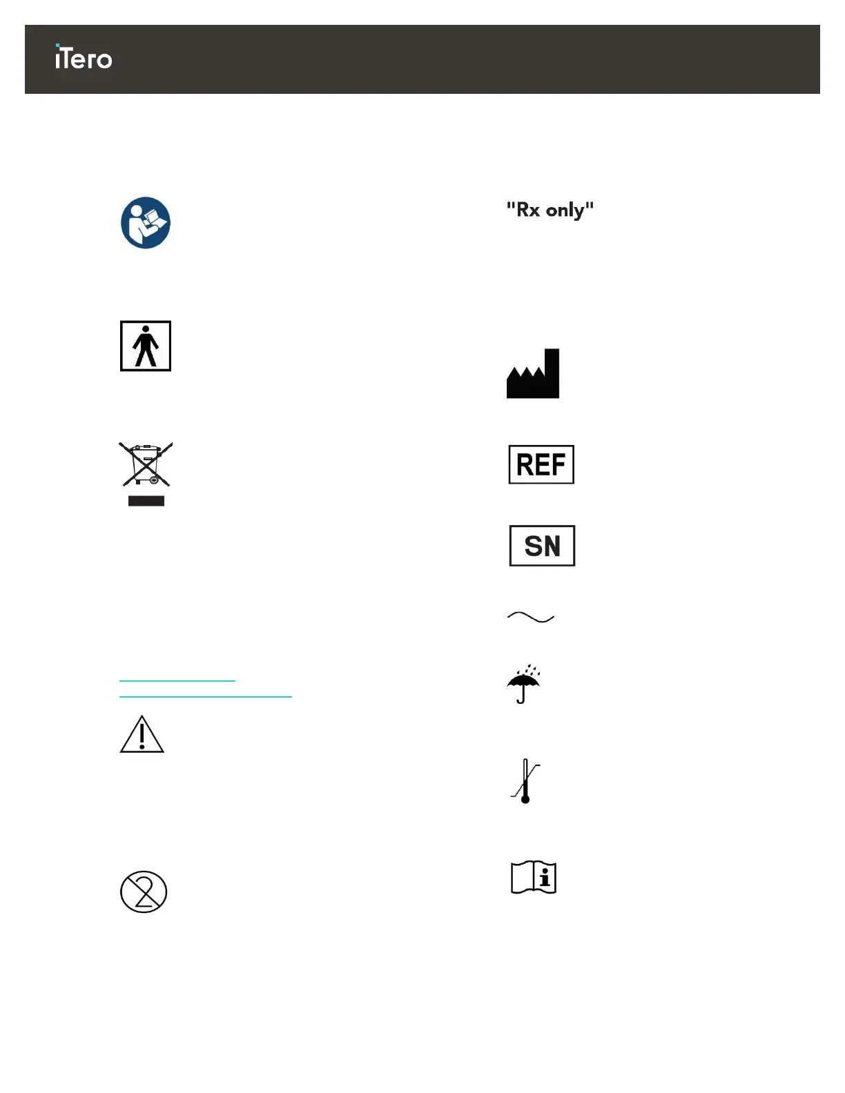 The following symbols may appear on iTero Element 2 and iTero Element Flex hardware components and