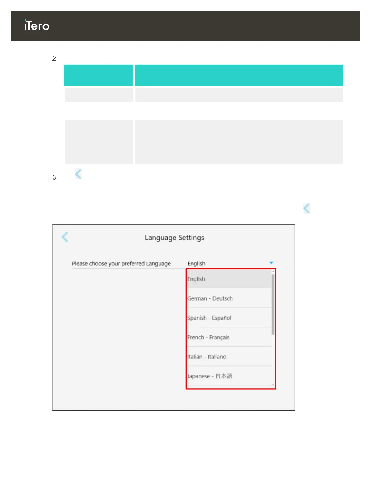 Tap the Language button, select your required language from the drop-down list, and then tap to save your