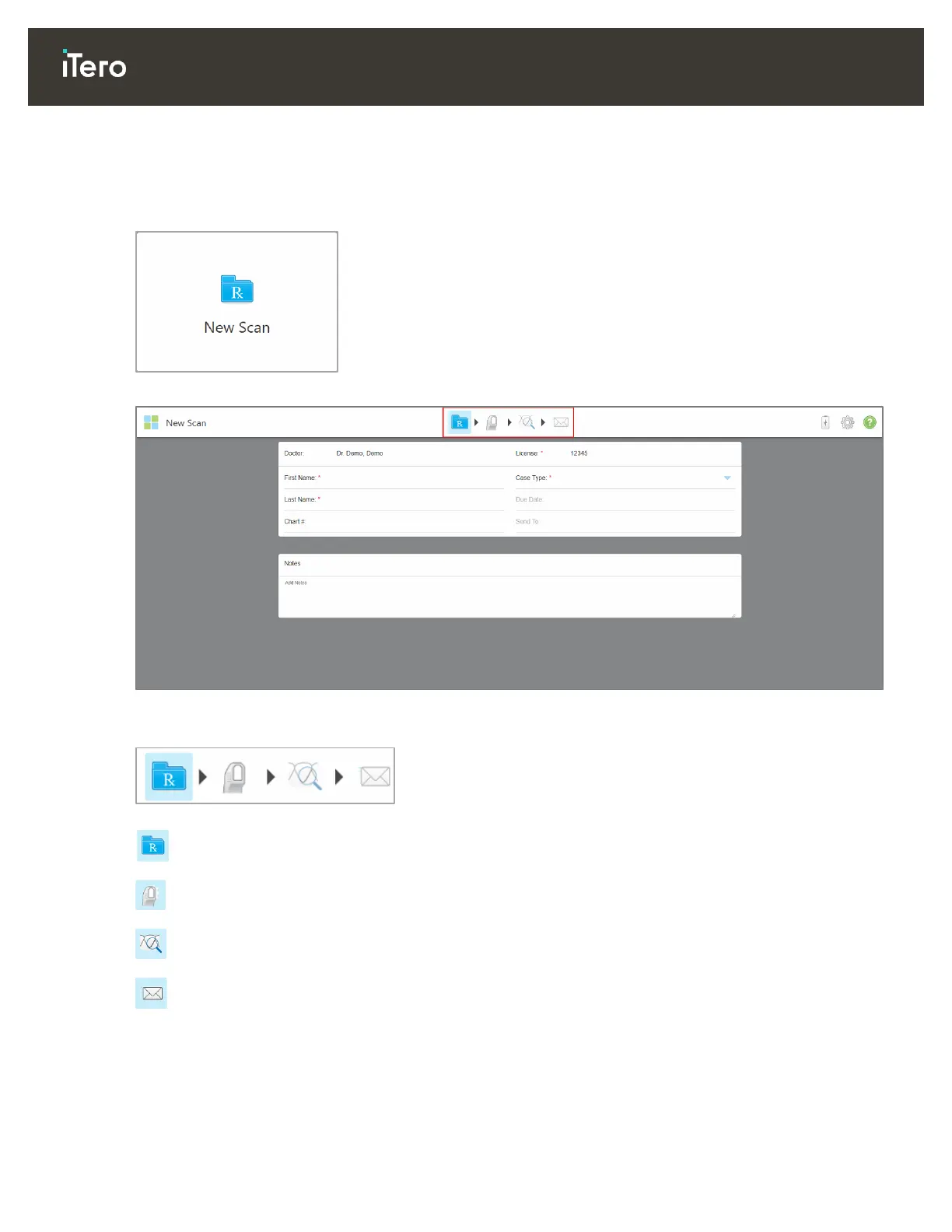 The scanning process requires the following steps, which are displayed on the toolbar: